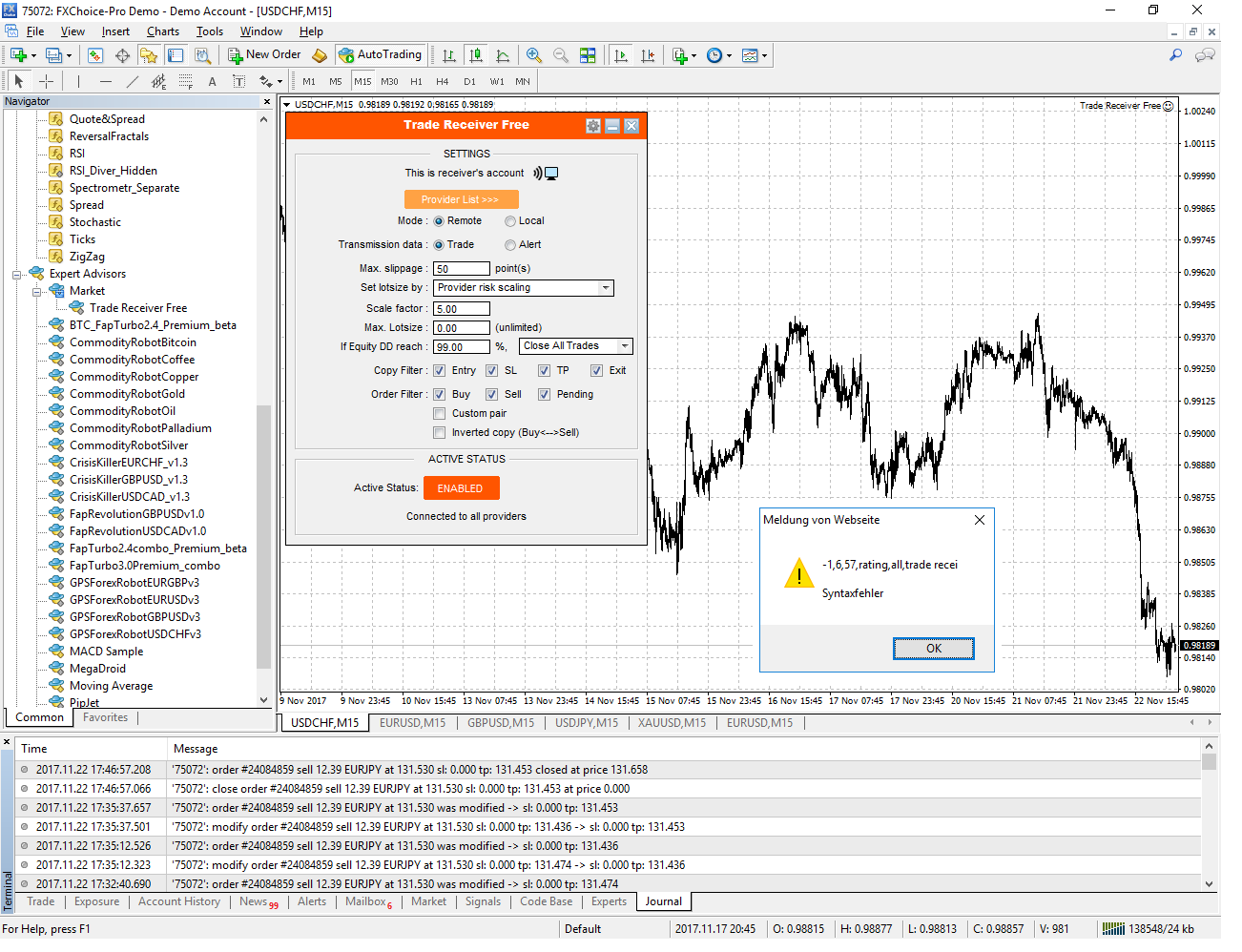 hi pls advise, I have bought your full version of the unlimited receiver. I have many accounts on 1 MT4 and only 1 provider on another MT4. but its not coping trades at all. only 1 receiver gets the trade copied and all receivers are on VPS. pls advise. Thank you