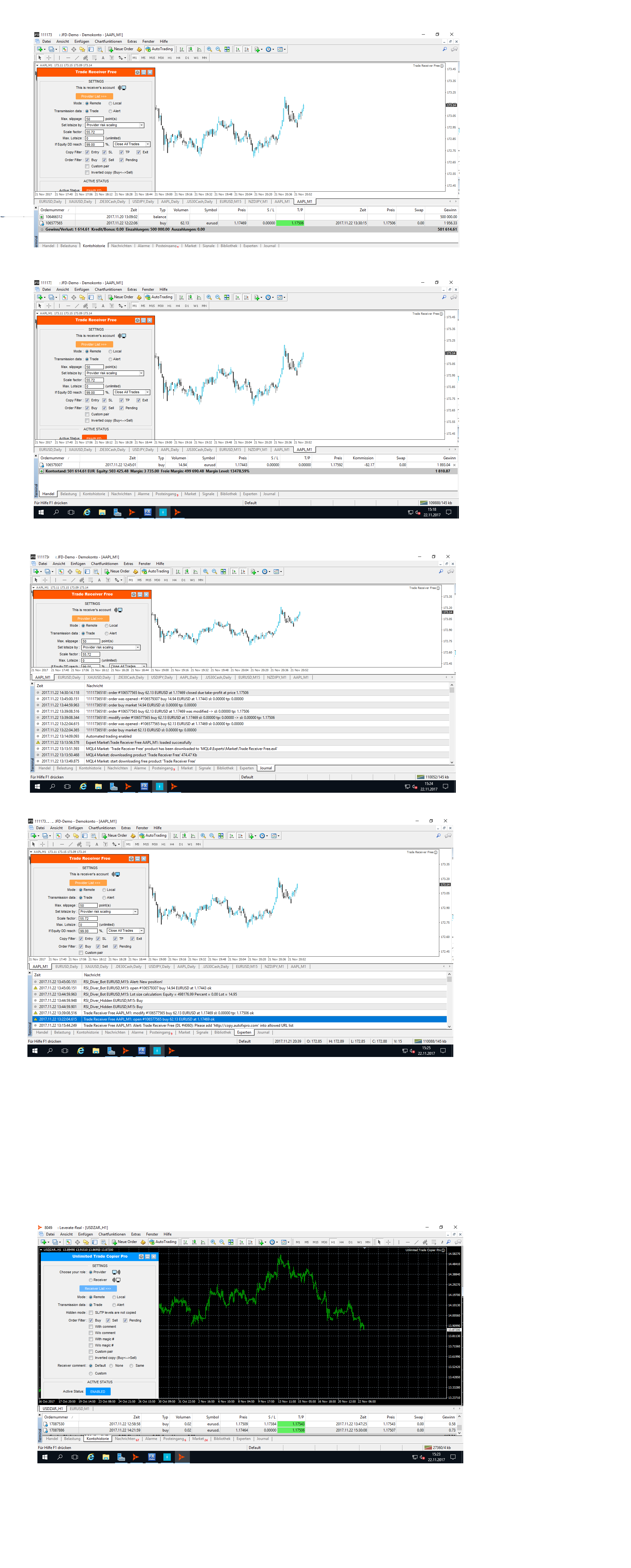 The only thing I have is that I personally trade one main account then have a couple of other personal ones Copying for their own goals. I just want to know if it's possible to have the Copier on one terminal and then separate terminal with multiple accounts (my other personal accounts) copying at the same time but on one terminal? So that I dont have about 4 or 5 terminals going. Otherwise amazing!!