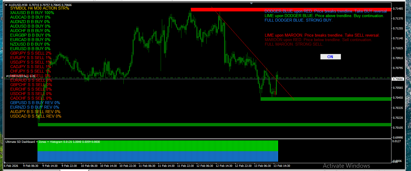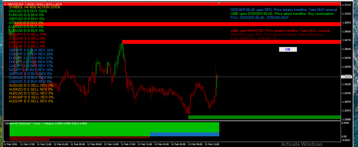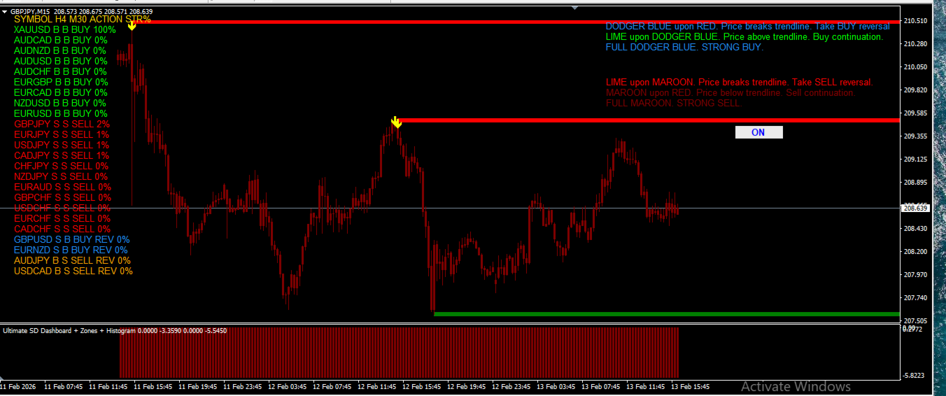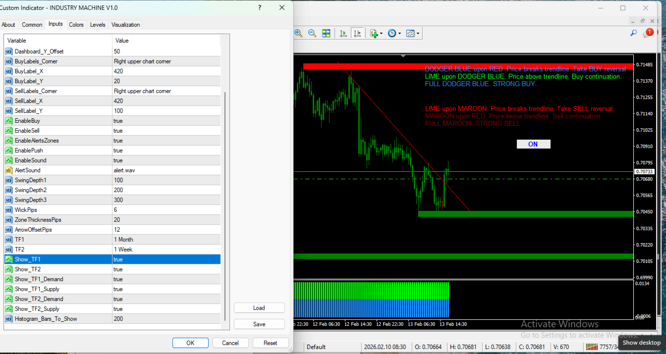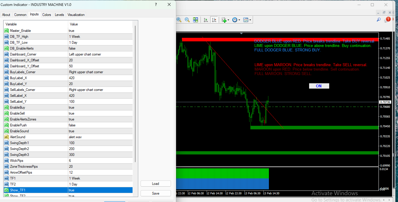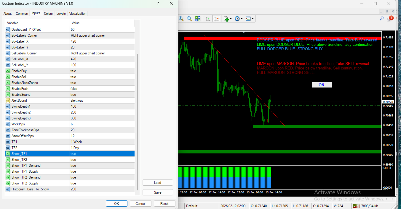 In sintesi, Industry Machine va oltre il semplice indicatore. Funziona come un vero “centro di controllo del mercato”, fornendo in tempo reale la direzione del mercato, la forza delle coppie, i livelli chiave di prezzo e le zone di potenziale inversione. È uno strumento potente per il trading a breve e medio termine.