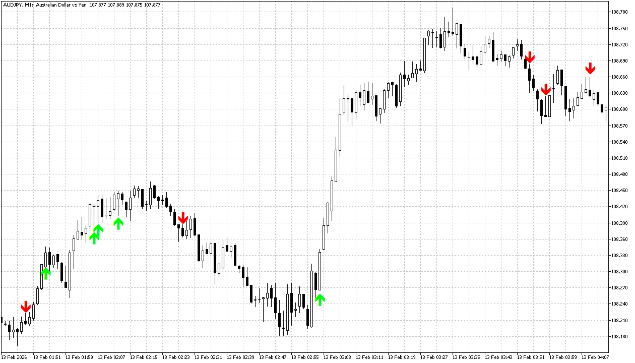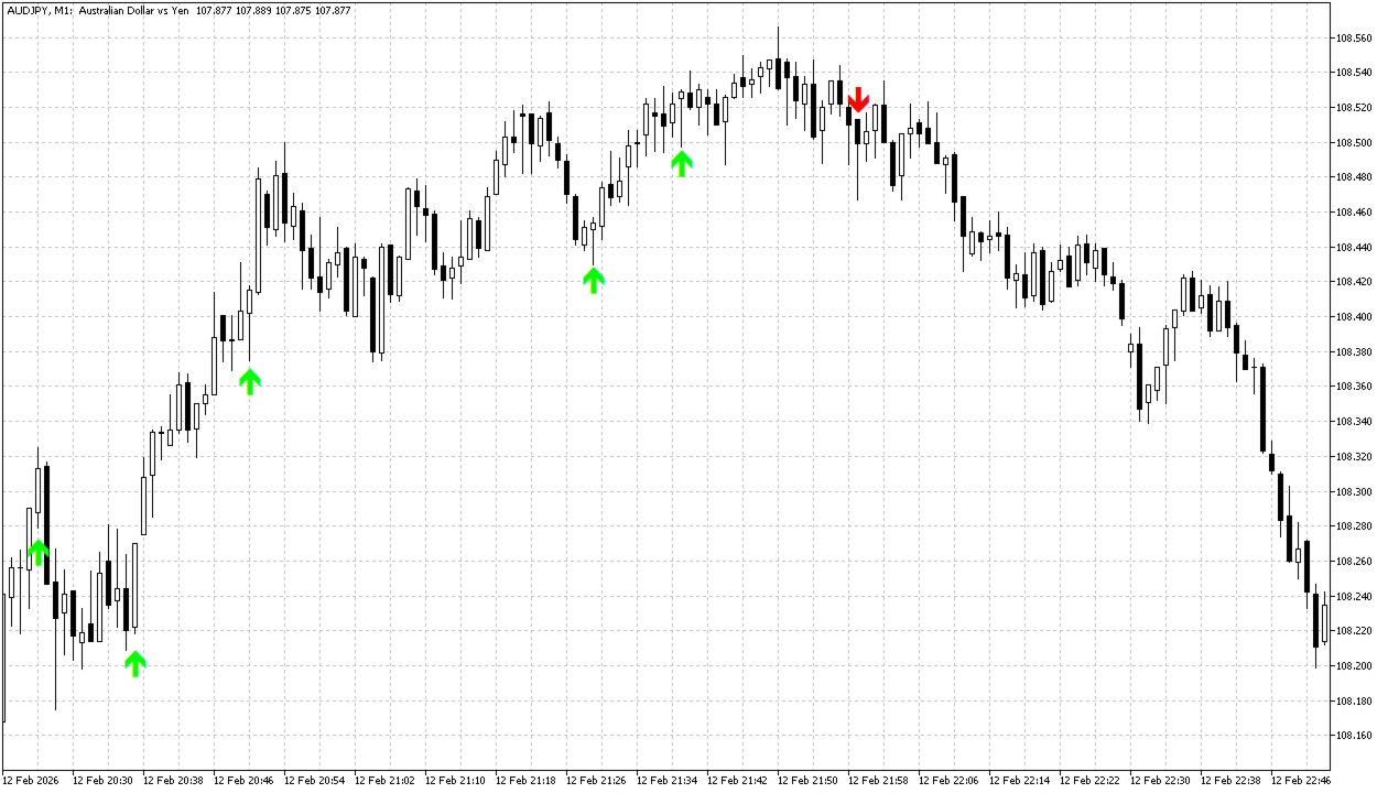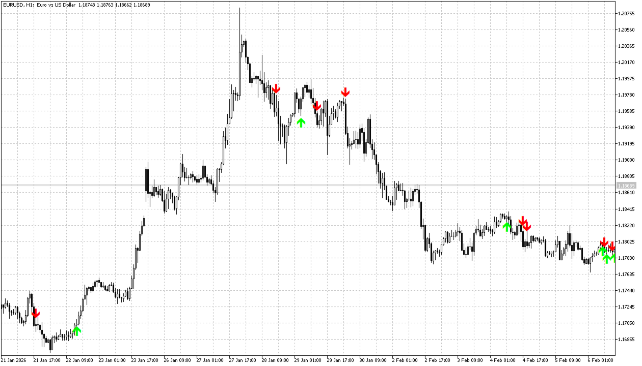 Smart Arrow Indicator is a professional analytical tool for the MetaTrader 5 platform. It is designed to identify potential trend reversal zones and momentum-based entry points.