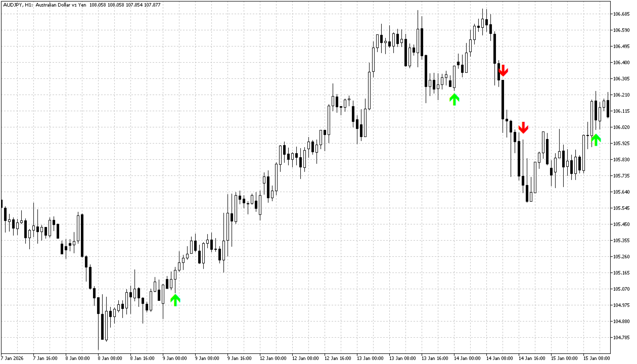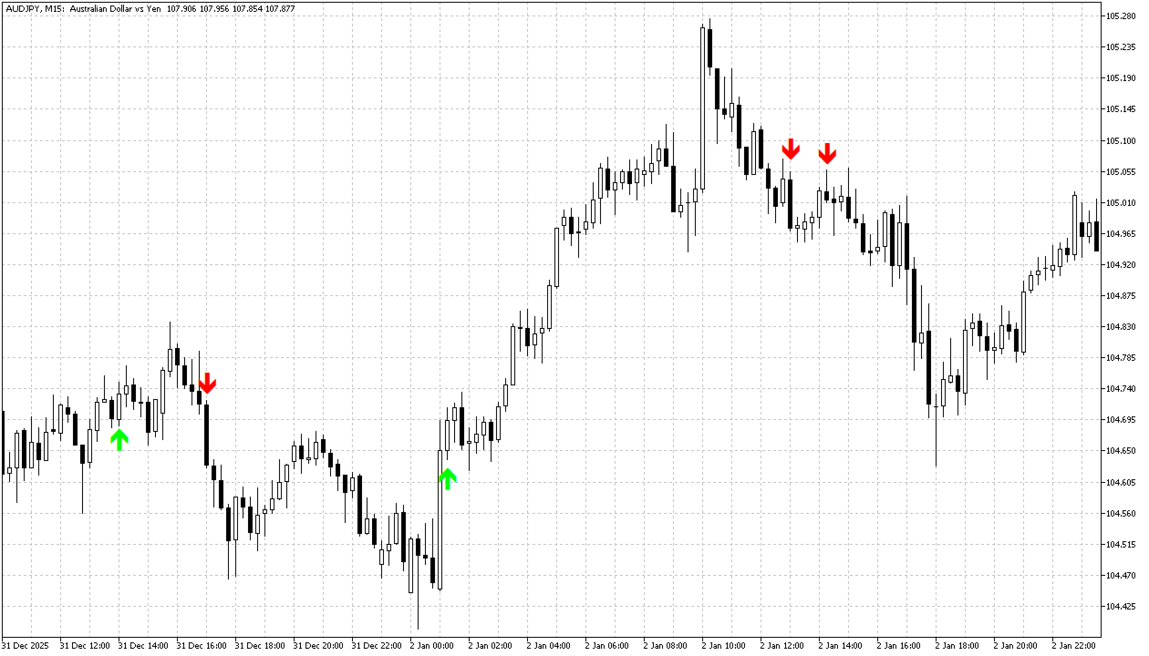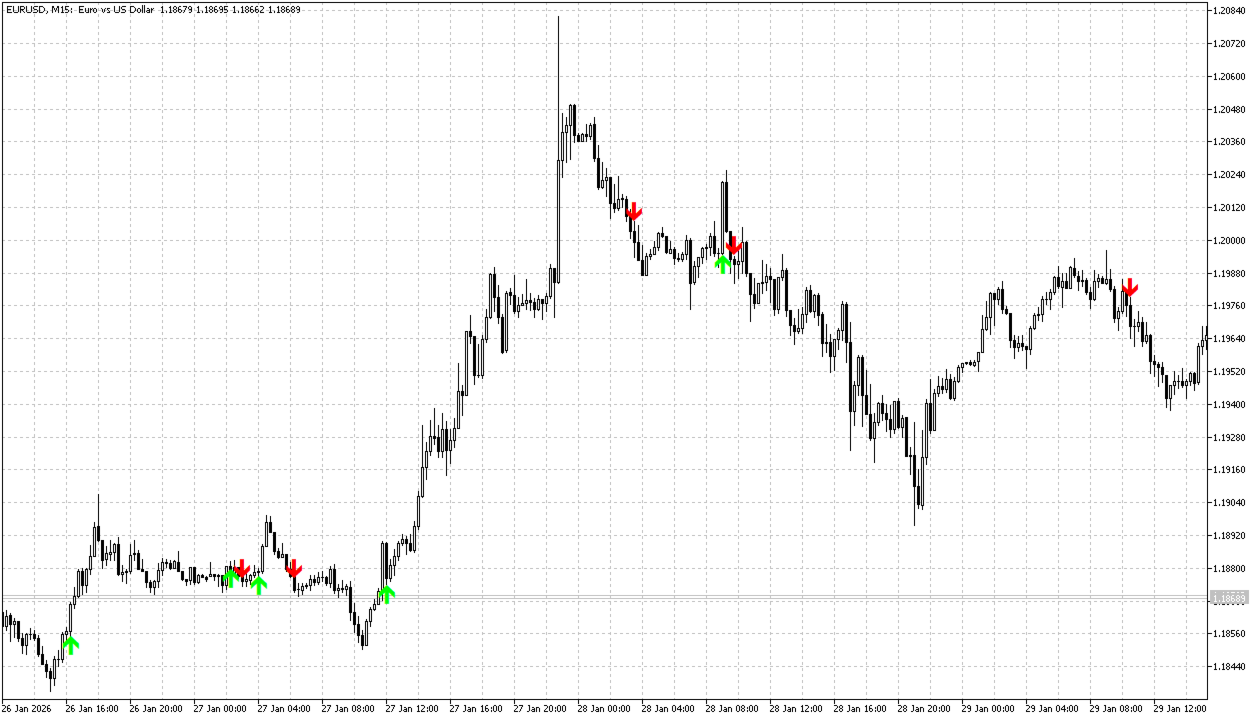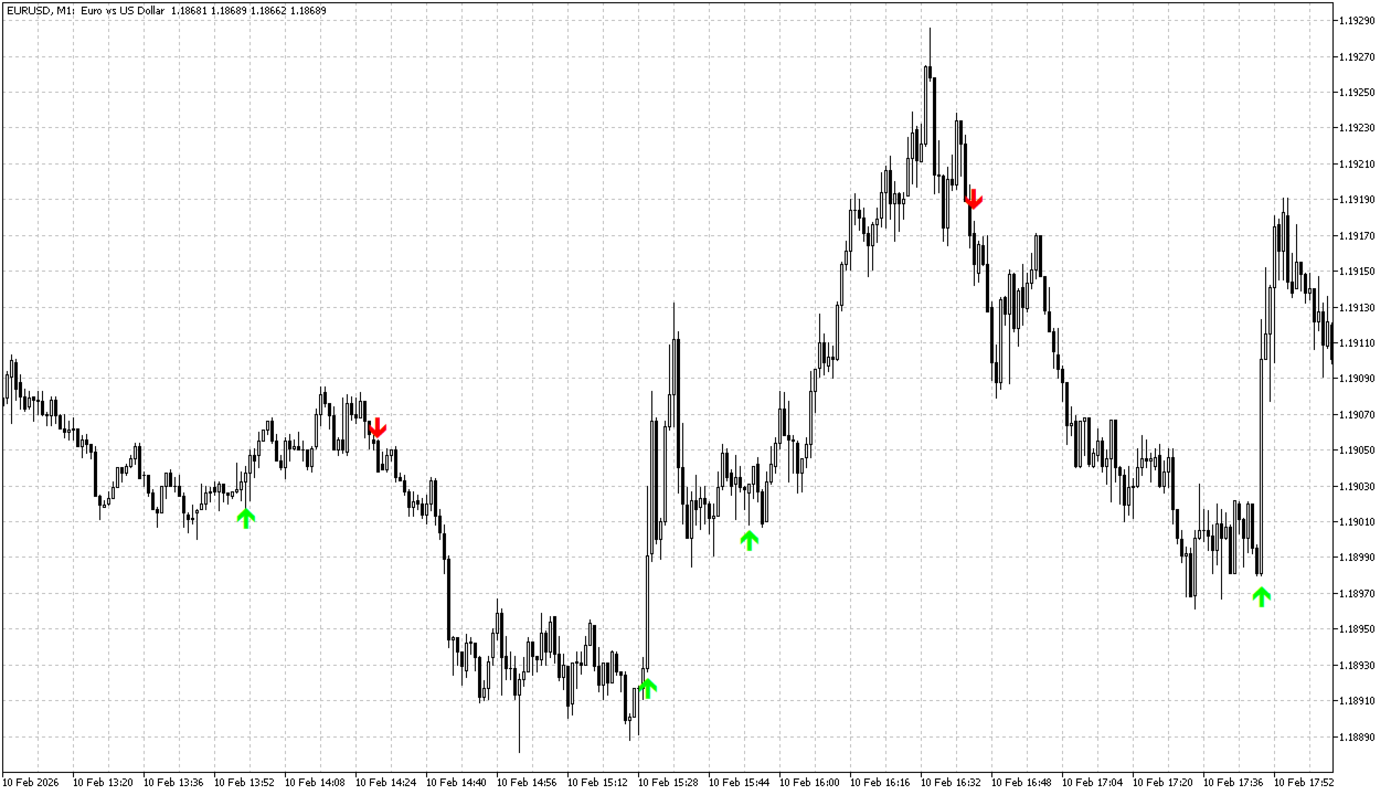 Smart Arrow Indicator is a professional analytical tool for the MetaTrader 5 platform. It is designed to identify potential trend reversal zones and momentum-based entry points.