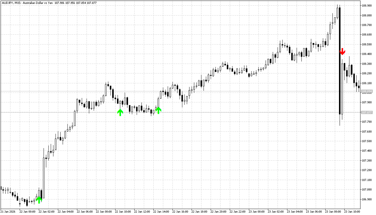 Arrow Distance (10) — Vertical offset of arrows from candles for improved chart visibility.