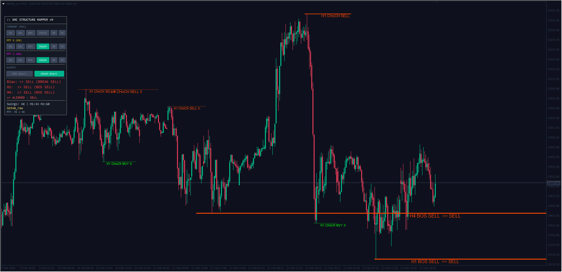 SMC Structure Mapper MTF — Professional Smart Money Concepts indicator with real-time multi-timeframe structure analysis and interactive control panel.