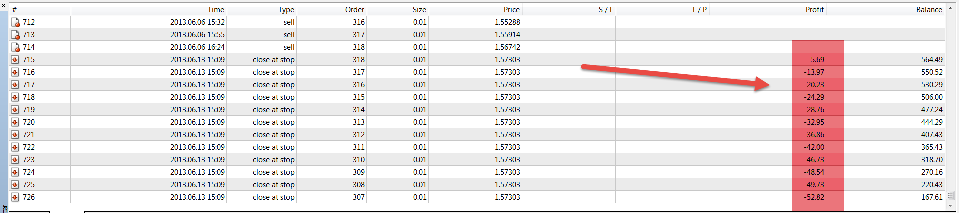 Что-то не так с вашей конфигурацией. Почему весь ваш размер позиции фиксирован на 0,01? И какую пару вы испытываете?