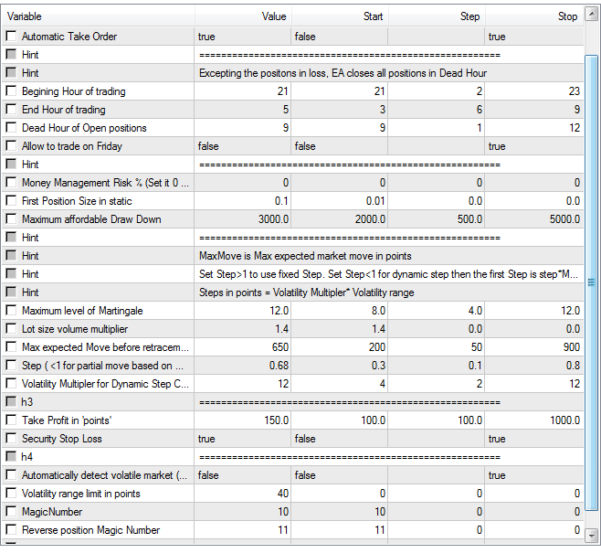 So MaxMove, Step and Step multiplier need to change when the market move and behavior changes.
