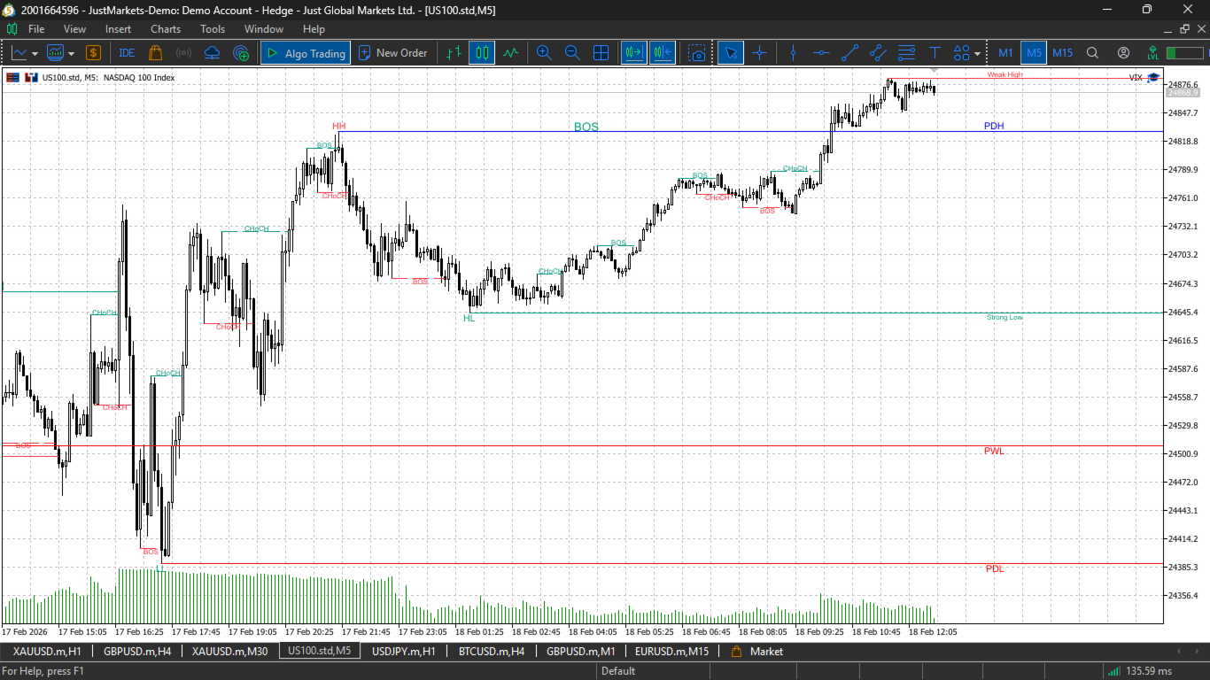 Tracks market structure – automatically labels HH/HL/LH/LL