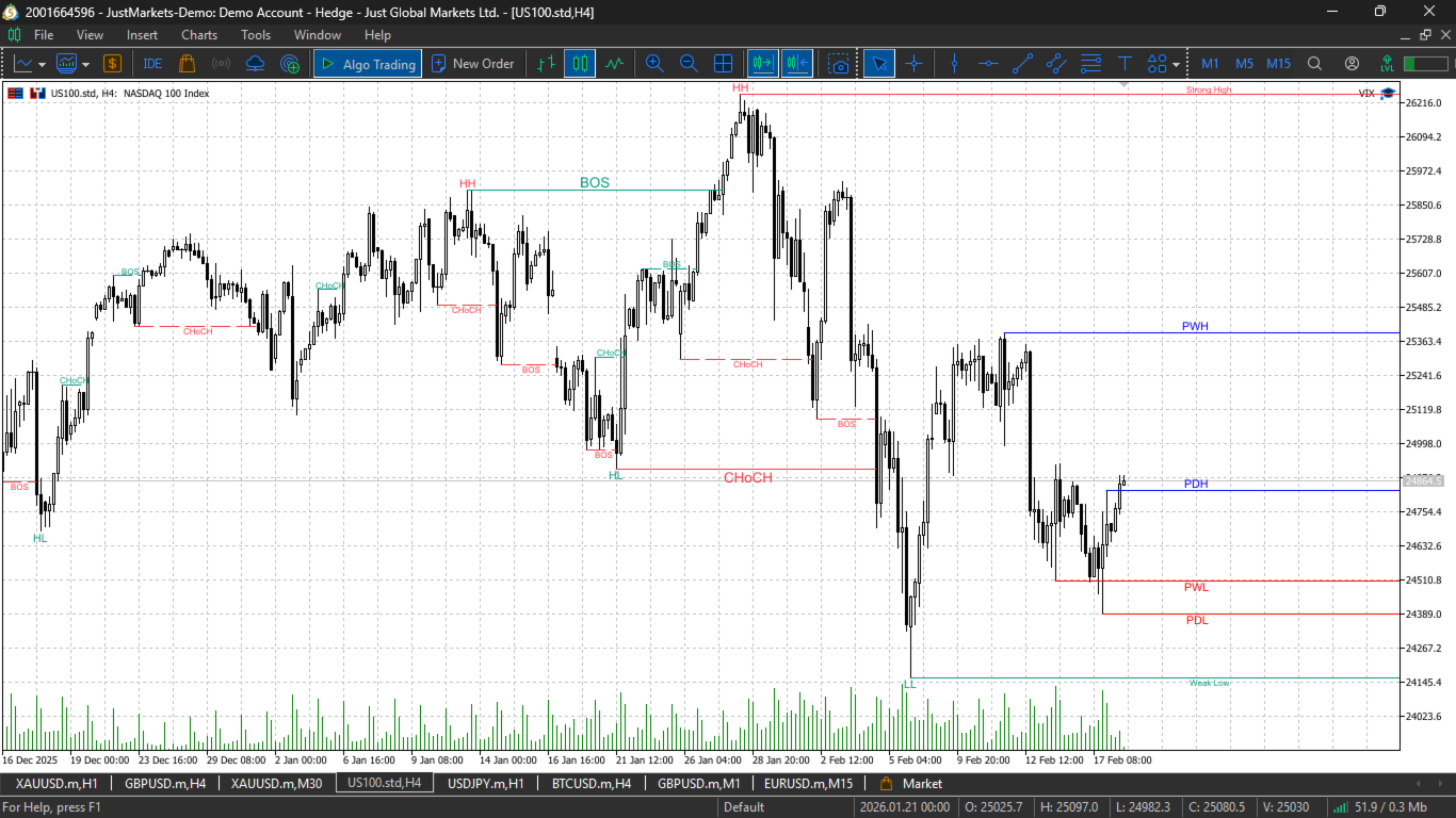 Internal & Swing Structure – Multi-timeframe structure analysis