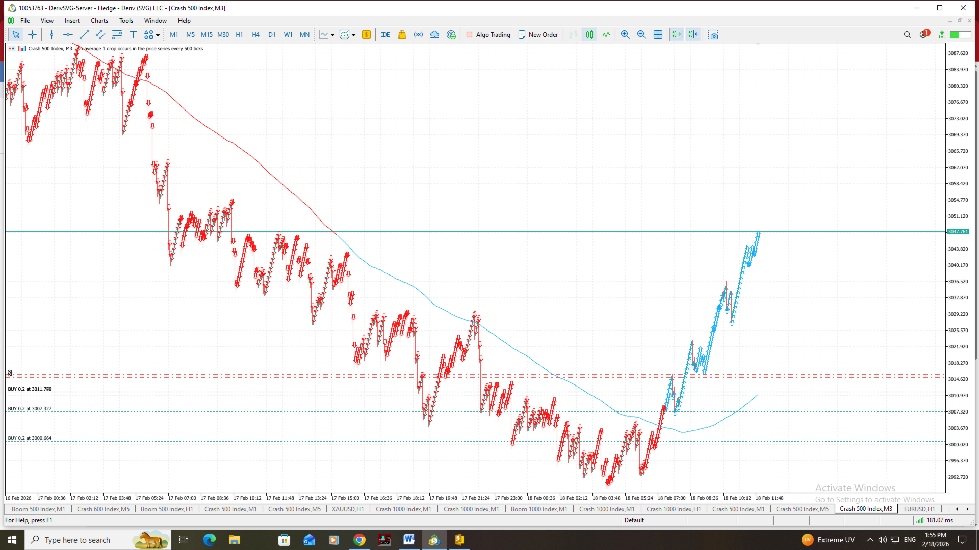 The Shabsawa trading strategy is designed to identify price reversals on Crash 500 and Boom 500 using the M5 timeframe. The approach begins by detecting an established trend, then waiting for the market to slow down and form a consolidation phase. A breakout from this consolidation confirms a potential change in direction, after which a trade is entered on a pullback to achieve better timing and lower risk. The strategy is straightforward to apply, helps reduce false signals by requiring confirmation at each stage, and supports structured risk management for more disciplined trading.