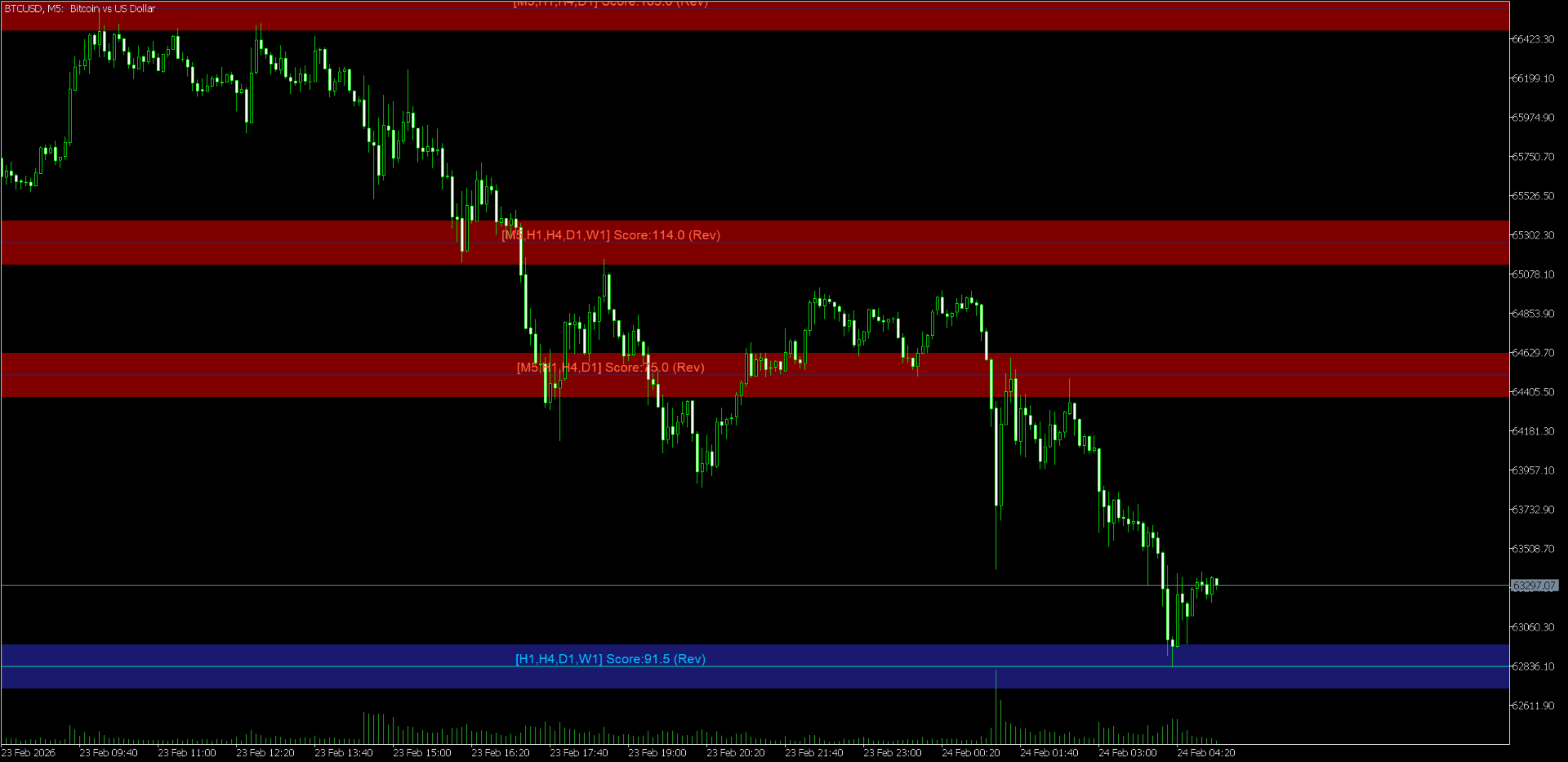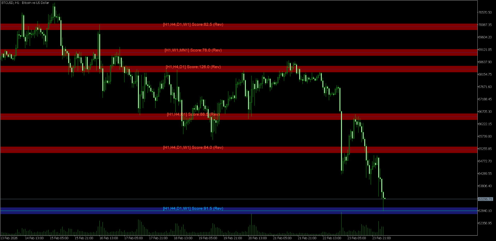 Multi-Timeframe S&R is a technical analysis indicator that detects pivot points across multiple timeframes and displays price levels where these points cluster on the chart. It integrates data from M15 up to Monthly timeframes for its analysis.