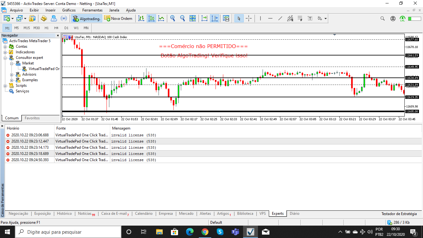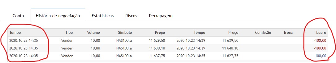 Olá, comprei o Trade Pad virtual no dia 14.10.2020, e ontem dia 23.10.2020 ja tive problemas no momento de negociar, quando apertei para entrar na negociação o Trade Pad Virtual travou e além de travar ele triplicou uma negociação fazendo com que eu perdesse 2. como mostra no print, 1 ganho e 2 perdas, realizando 3 negociação na mesma hora. (detalhe: apertei para cancelar quando percebi que algo estava errado, porém não funcionou e está travado até agora. não funciona o VTP, está totalmente travado, extamente como no print) imagina se isso acontecer quando estiver na conta real, um grande prejuizo, solicito solução do problema por favor, como devo consertar isso?