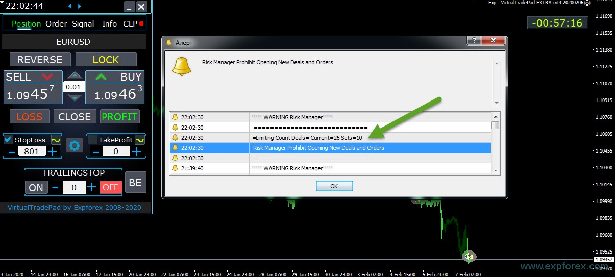 Atenção! Este bloqueio funciona apenas para bloquear a abertura de posições de nosso painel VirtualTradePad! E não pode influenciar e bloquear outros conselheiros!