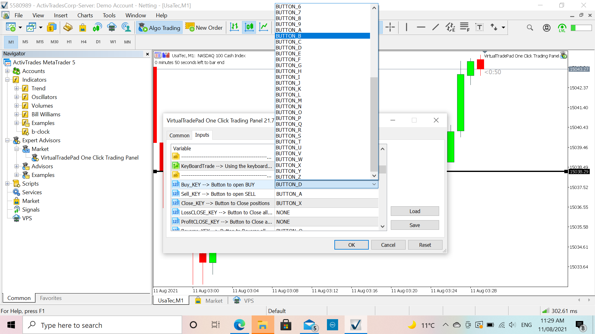 VirtualTradePad One Click Trading Panel