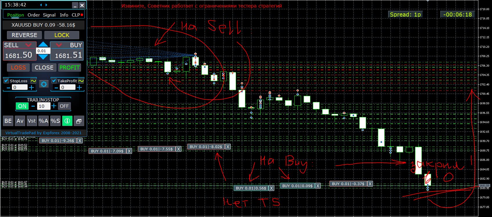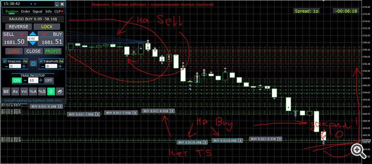 Я включил безубыток, потому что иначе ордера остаются открытыми, в случае разворота и ухода цены. Я бы использовал только Трейлингстоп, но он кидается в 0 и закрывает позицию, в лучшем случае, в 0, но обычно в минус (я думаю из-за проскальзывания или же динамического спреда). Пытаюсь разработать стратегию, где бы не оставались висеть открытые минусовые ордера). Пожалуйста, перепроверьте режимы и дайте режимы настройки (возможно у меня что-то не так установлено со Стоплоссом и Тейкпрофитом или чем-то еще?). Даже если BE отключен (посмотрите первое фото), то ничего не меняется и цена так же усредняется. Может, у Вас есть пошаговая инструкция для чайников? :-) Спасибо за быстрые ответы.