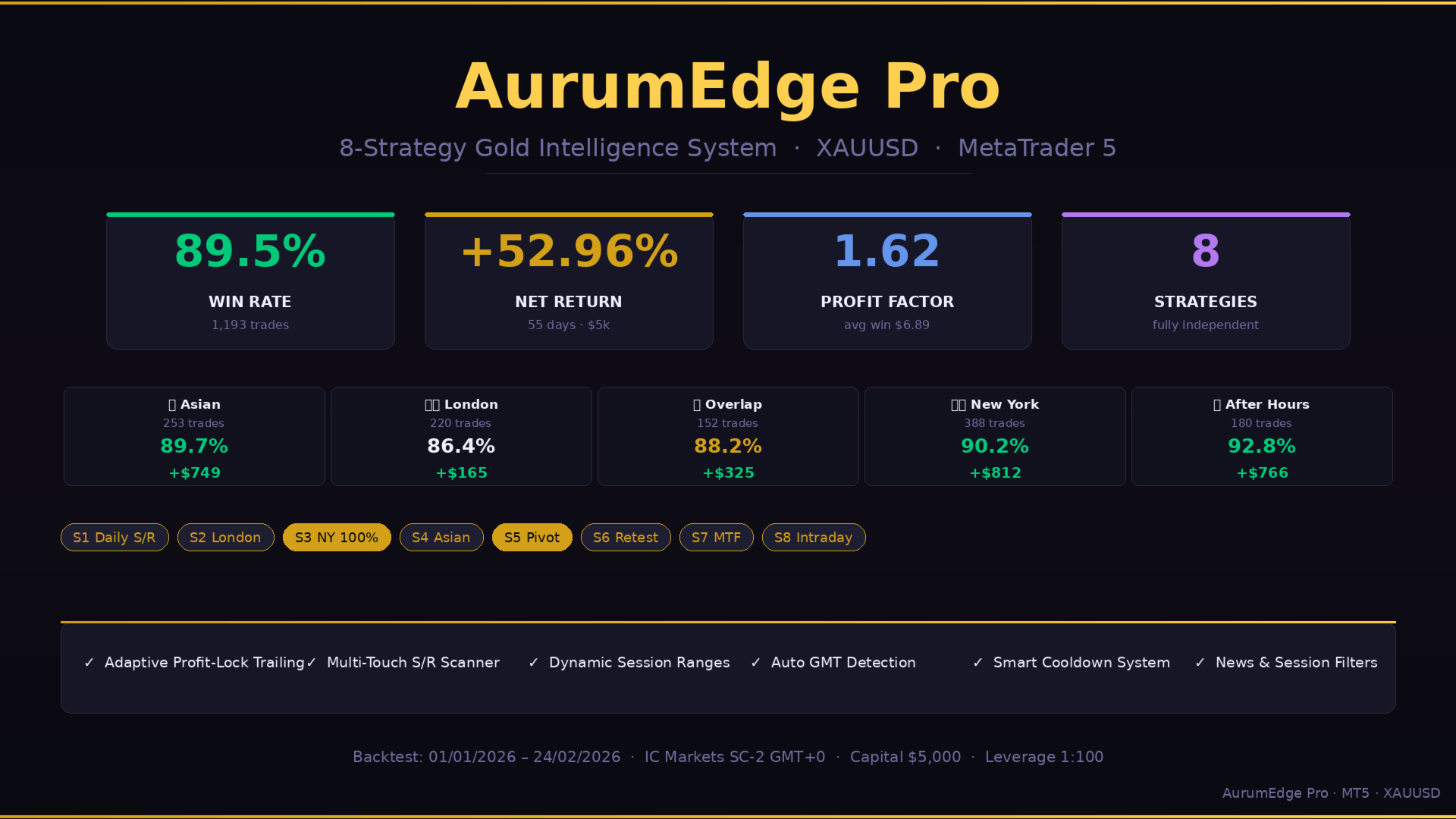 AurumEdge Pro — 8-Strategy Gold Intelligence System for XAUUSD