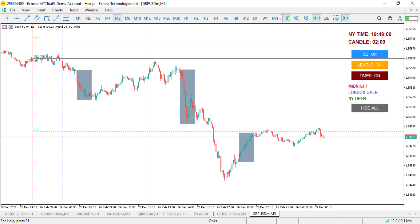 Descrizione: Strumento professionale per la gestione del grafico basato sulla teoria del tempo e del prezzo ICT (Institutional Order Flow).