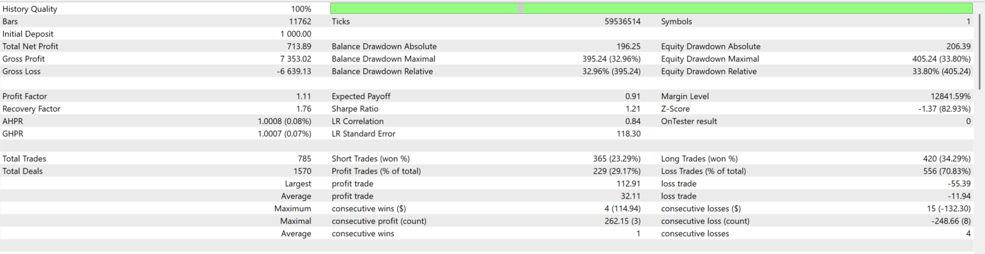 - Take Profit: 4.0 × ATR (dynamic)