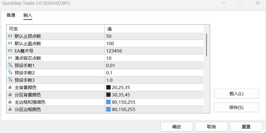 Fully Customizable Appearance: Every color – background, border, buttons, labels – and all font sizes can be adjusted via input parameters, allowing you to tailor the panel to your personal taste.
