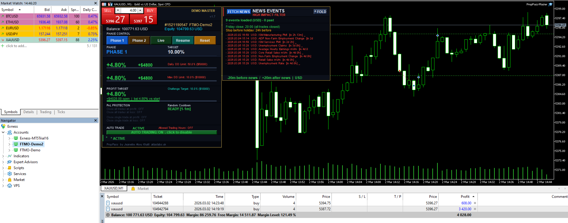 PropPass Master è uno strumento di gestione e automazione del trading progettato per aiutare i trader ad applicare regole di trading predefinite e parametri di challenge.