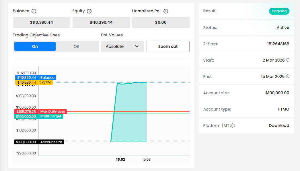 Se un tentativo di challenge non raggiunge l’obiettivo di profitto richiesto, il conto reale può comunque generare profitti utilizzando la stessa configurazione strutturata.
