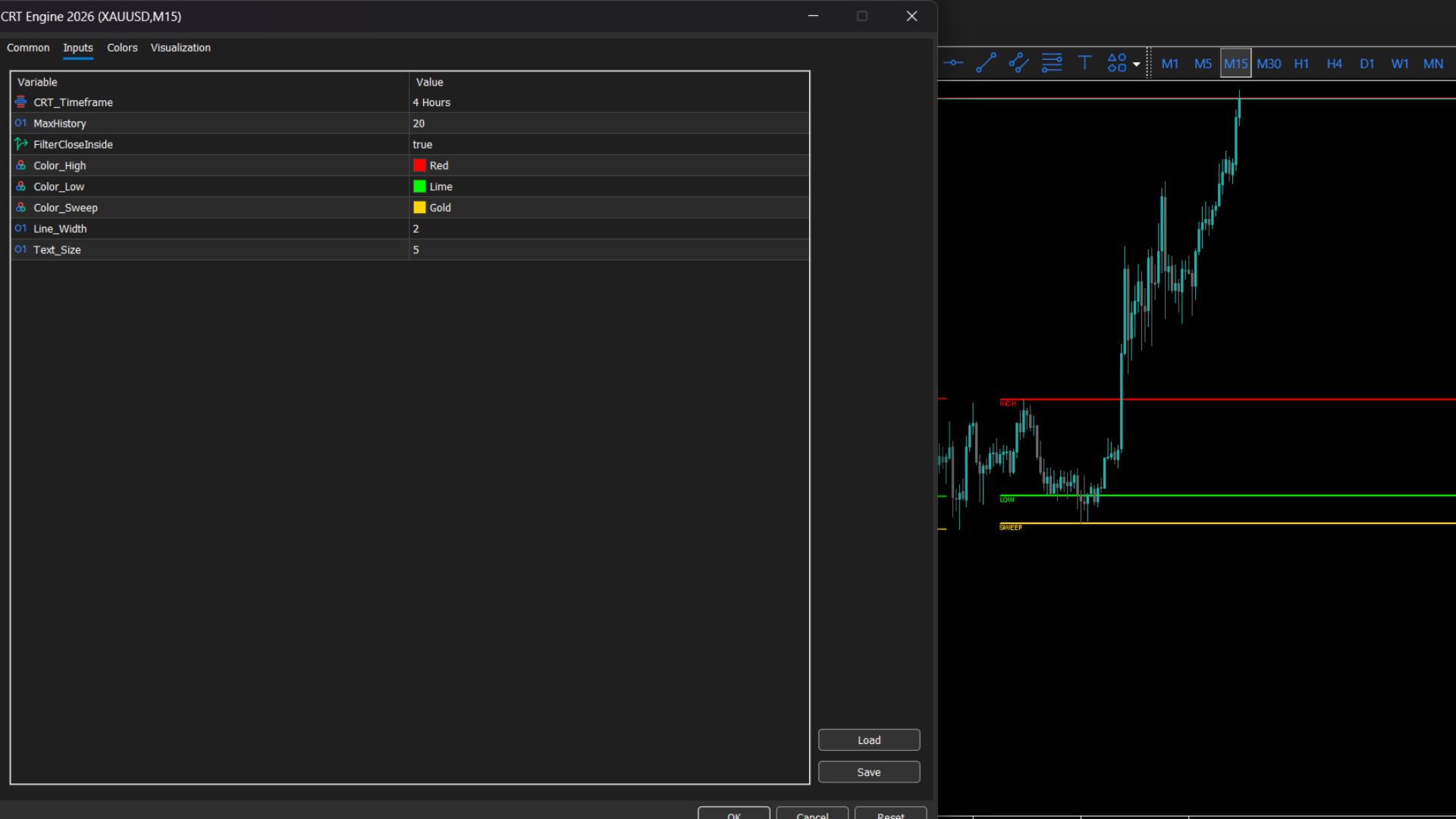 CRT Engine is a precision-based market structure indicator designed to automatically detect and visualize Candle Range Trap (CRT) setups on your selected higher timeframe.