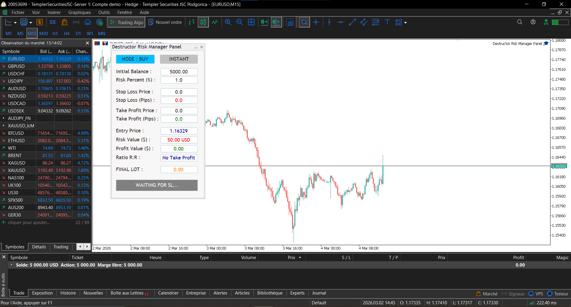 Take full control of your trading risk with Destructor Risk Manager, a professional-grade visual utility designed for MetaTrader 5. Stop wasting time with manual lot size calculations and focus on what matters: the Price Action.