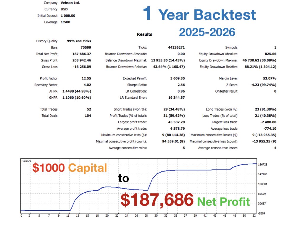 Advanced Recovery Grid (Multiplier): When a trade moves into a drawdown, the EA initiates a smart recovery grid. You can set independent multipliers for each side (e.g., a flat 1.0 lot for Buys and a 2.0 Martingale for Sells) to suit your risk appetite.