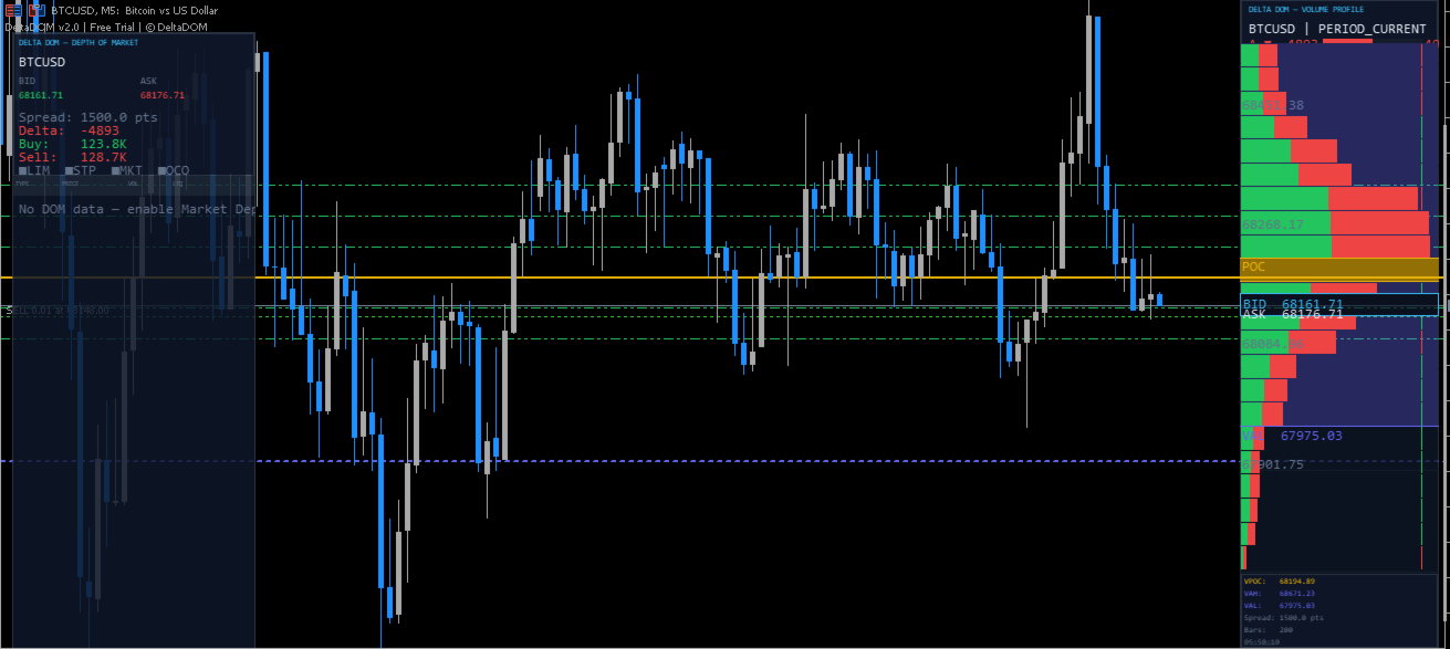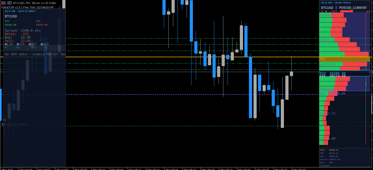 DeltaDOM v2.0 — Volume Profile + DOM + Delta Volume Professional Order Flow Analysis for MetaTrader 5