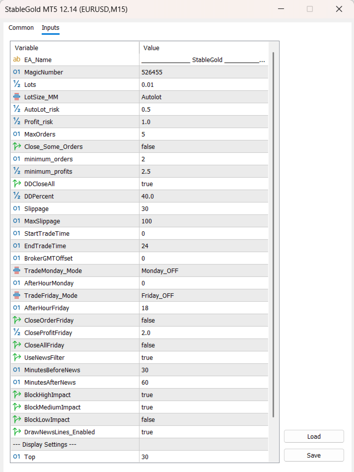 - BlockMediumImpact - Set true or false for Moderate Volatility News filter