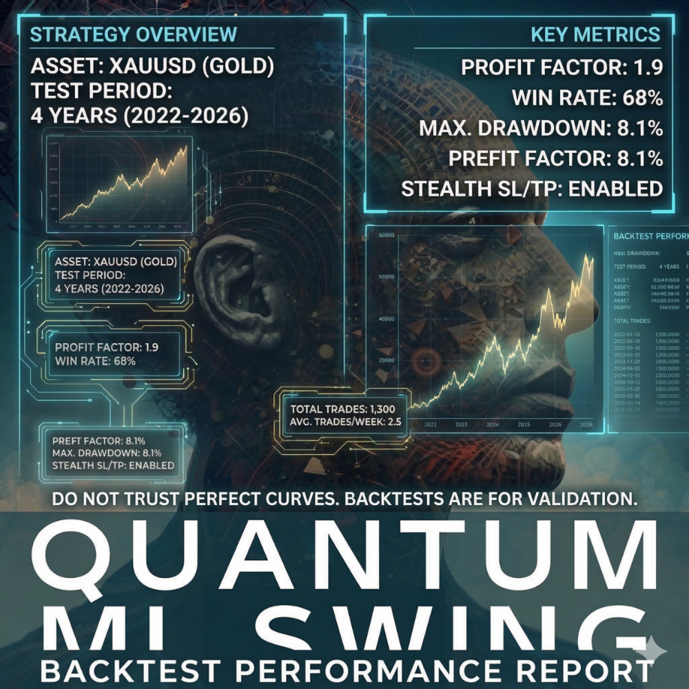 Quantum ML Swing is a fully automated Expert Advisor built, combining four independent quantitative strategies through machine learning to trade XAUUSD. Every parameter is the result of rigorous data science — not curve-fitting, not indicator stacking, not guesswork.