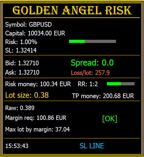 Golden Angel Risk Calculator MT5