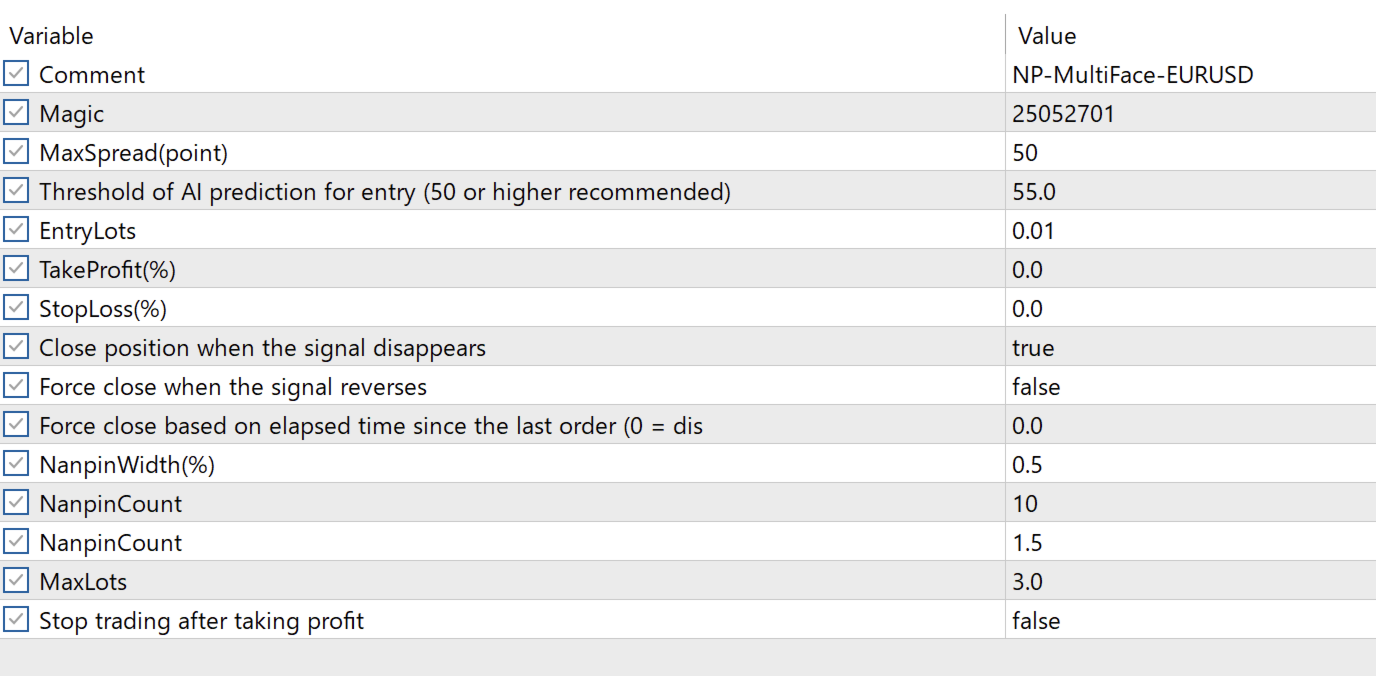 【概要】 「MultiFace」は、ONNX(Open Neural Network Exchange)形式の機械学習モデルを直接MQL5に統合した、先進的なエキスパートアドバイザー(EA)です。 名前の由来である「マルチフェイス(多面性)」の通り、トレンド、レンジ、ボラティリティの拡大・縮小など、刻一刻と変化する相場の顔(レジーム)をAIがリアルタイムに分析し、最適なエントリーとエグジットを判断します。