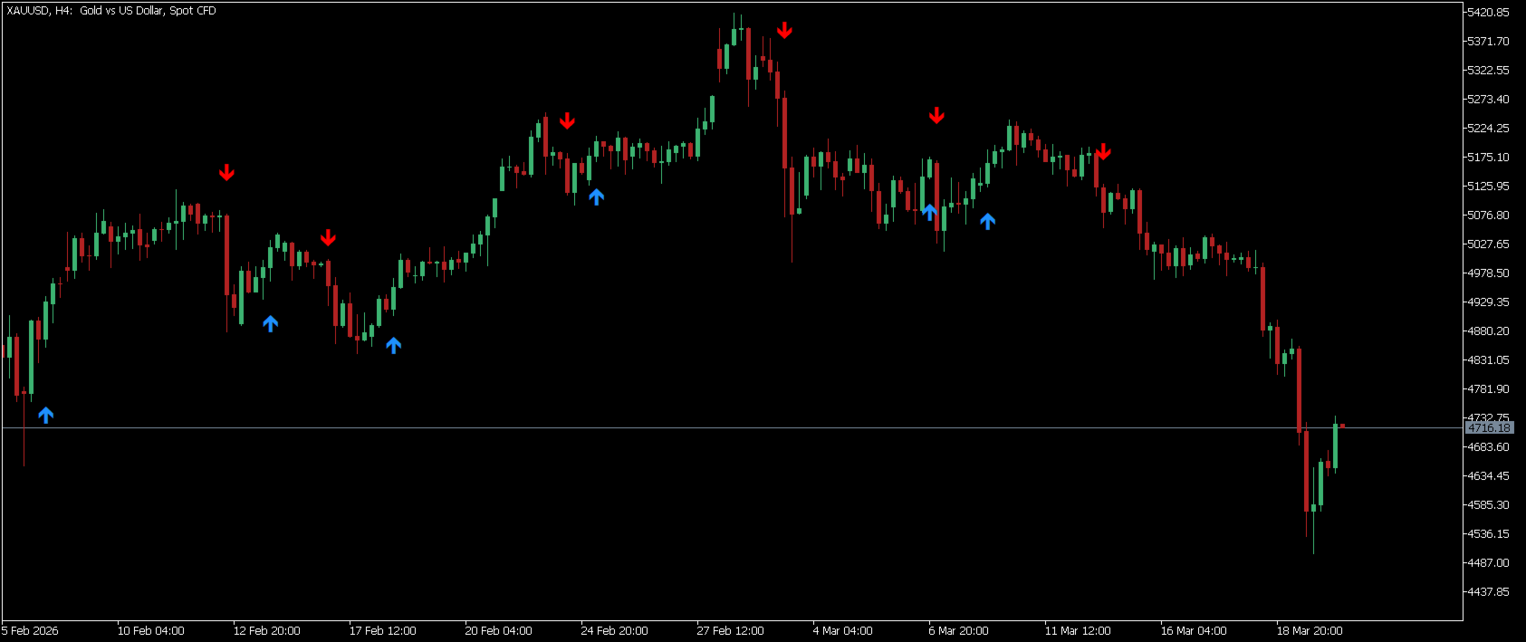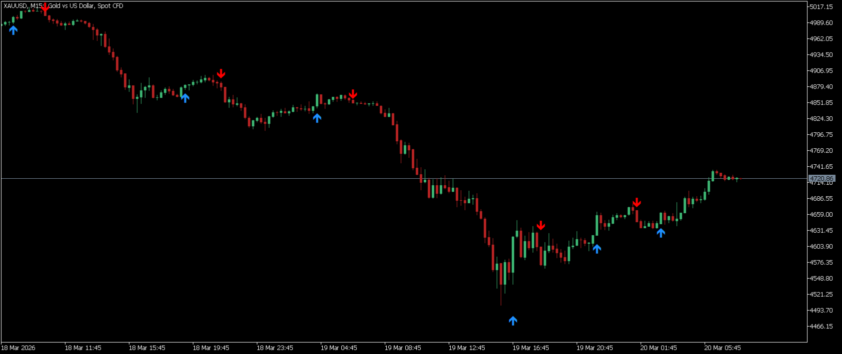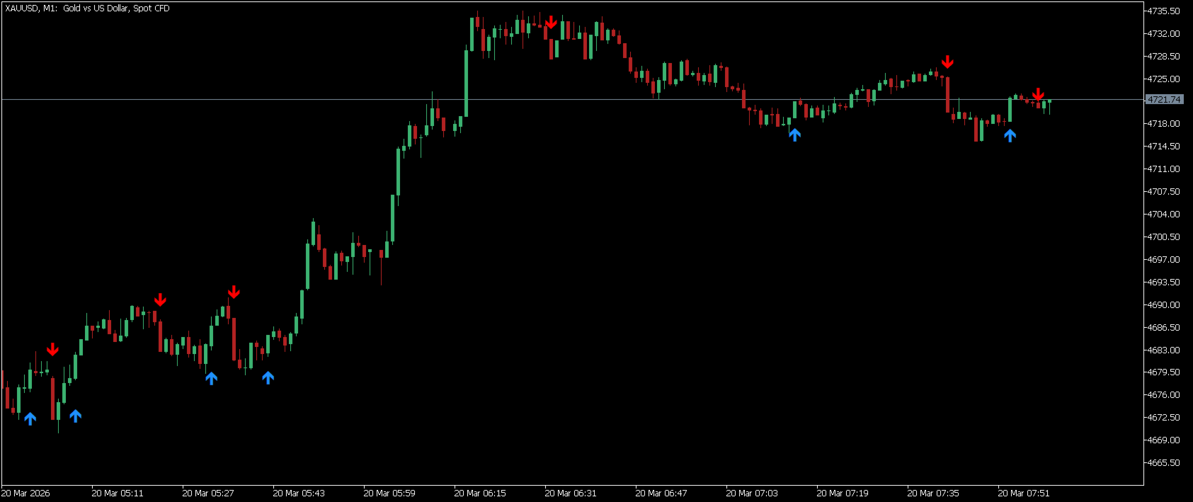 Apply the indicator to your chart and watch for arrows forming after candle close. A buy arrow suggests upward momentum confirmation, while a sell arrow indicates downward pressure. For best results, align signals with overall market structure or higher timeframe direction. It performs well in breakout and continuation environments, and can also assist in spotting reversals near key zones. Alerts can be enabled for real-time notifications, making it suitable for both active and semi-automated workflows.