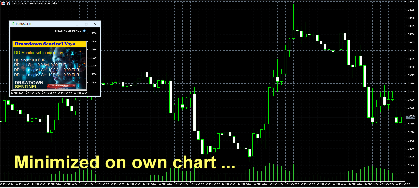 Drawdown Sentinel is a specialized utility designed for traders who need real-time monitoring of their account exposure and drawdown levels. This version focuses on providing instant awareness, allowing you to stay informed about your risk status without the need for automated intervention.