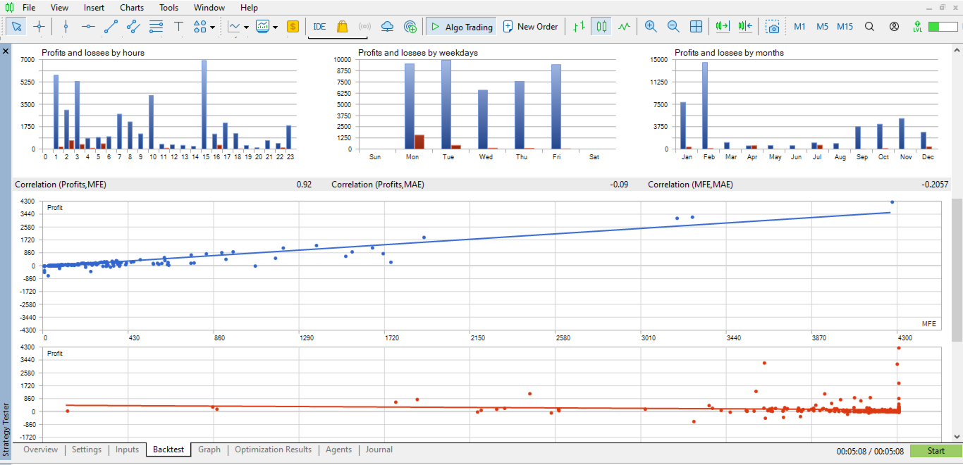 Testing the advisor on historical data is equal to real-time behavior (1:1 ratio).