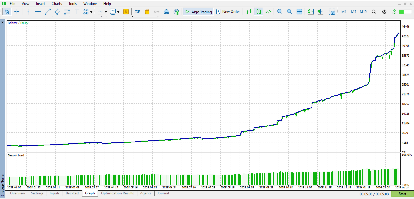The advisor uses a built-in Magic Number, eliminating conflicts with other advisors or manual trading.