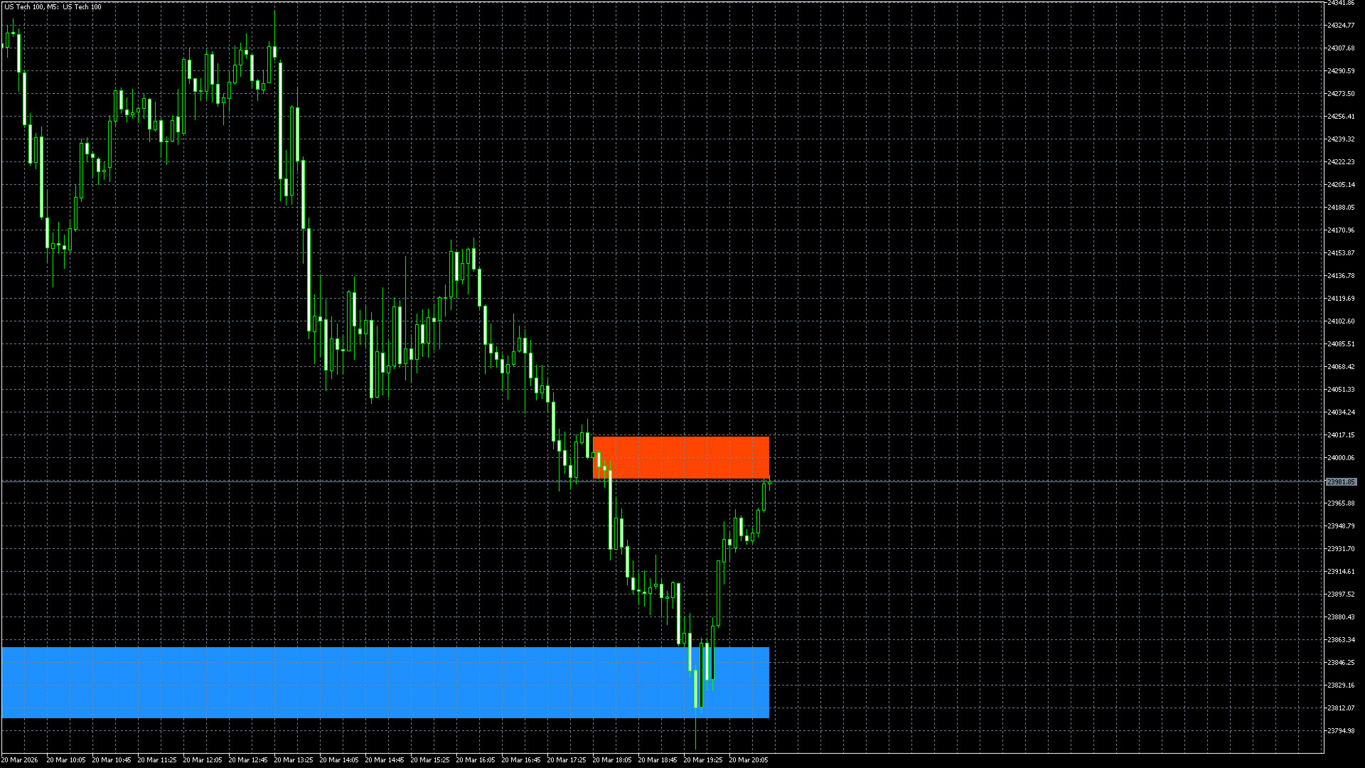 • Only enter a buy or sell when price enters the zone and then rejects it, confirmed by clear rejection candles.