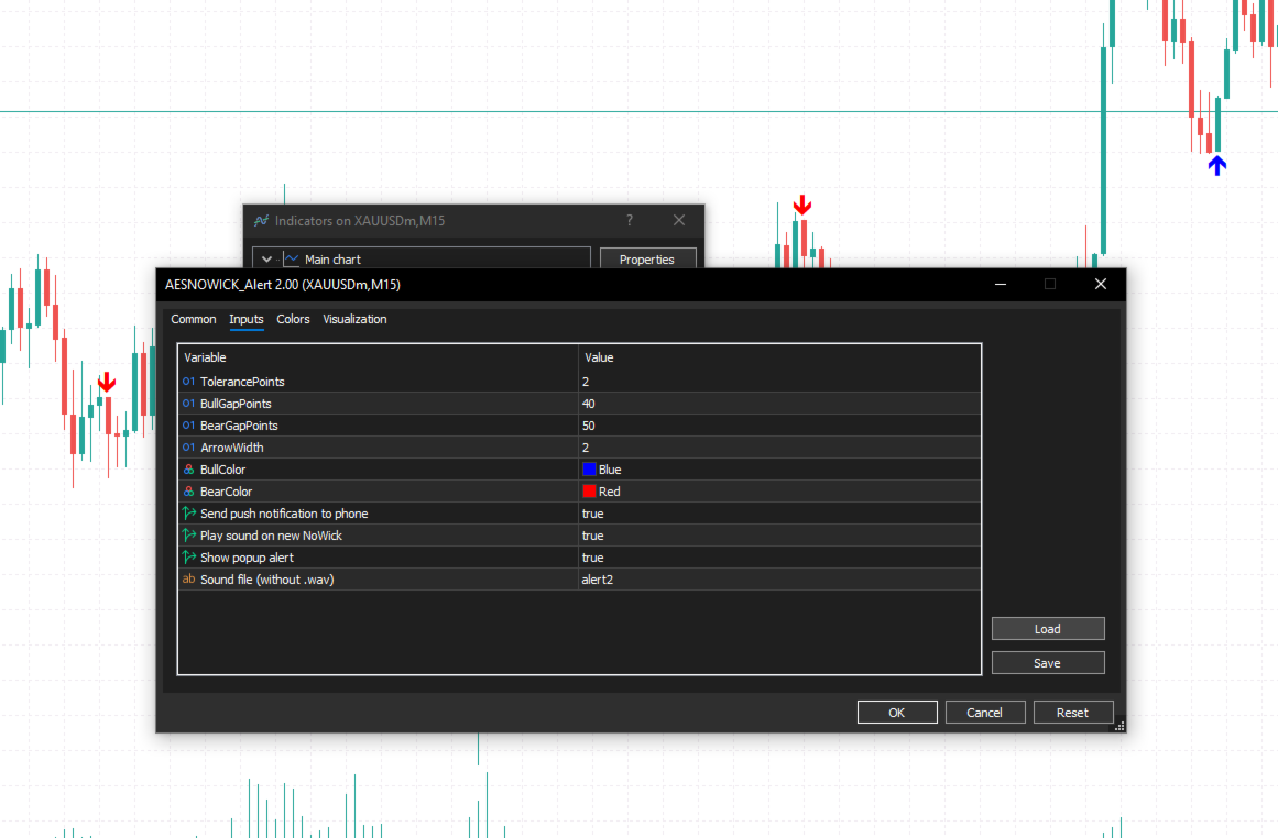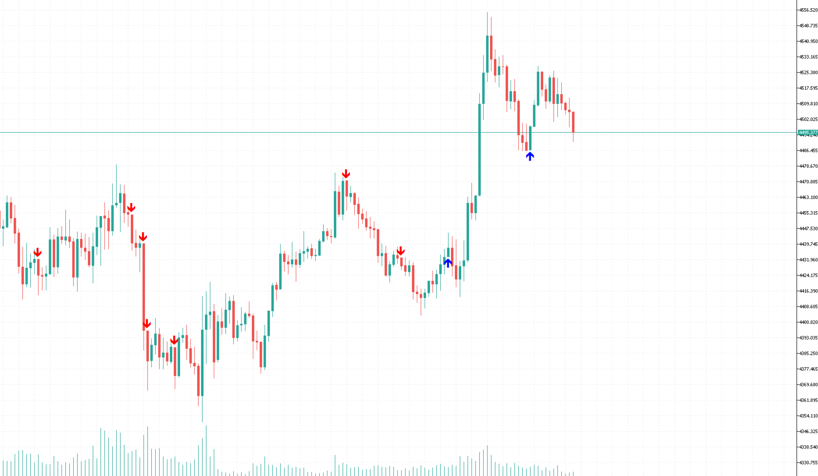 NoWick Candle places clear arrows directly on your chart:
