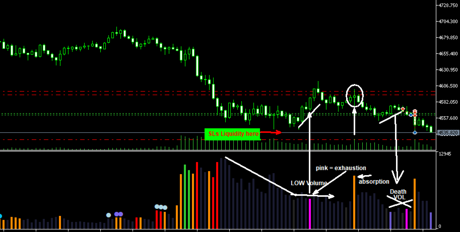 - Sniper Zones: Detects low-volume bars returning to pre-mapped interest zones, signaling potential supply or demand tests (Dry Tests).