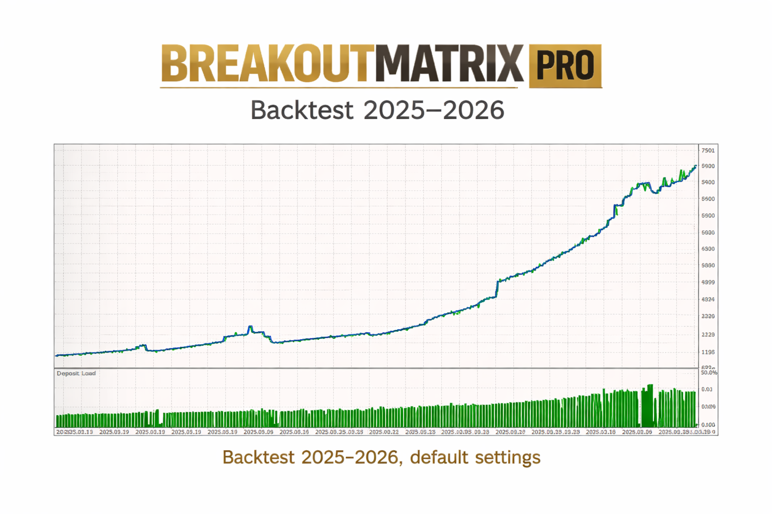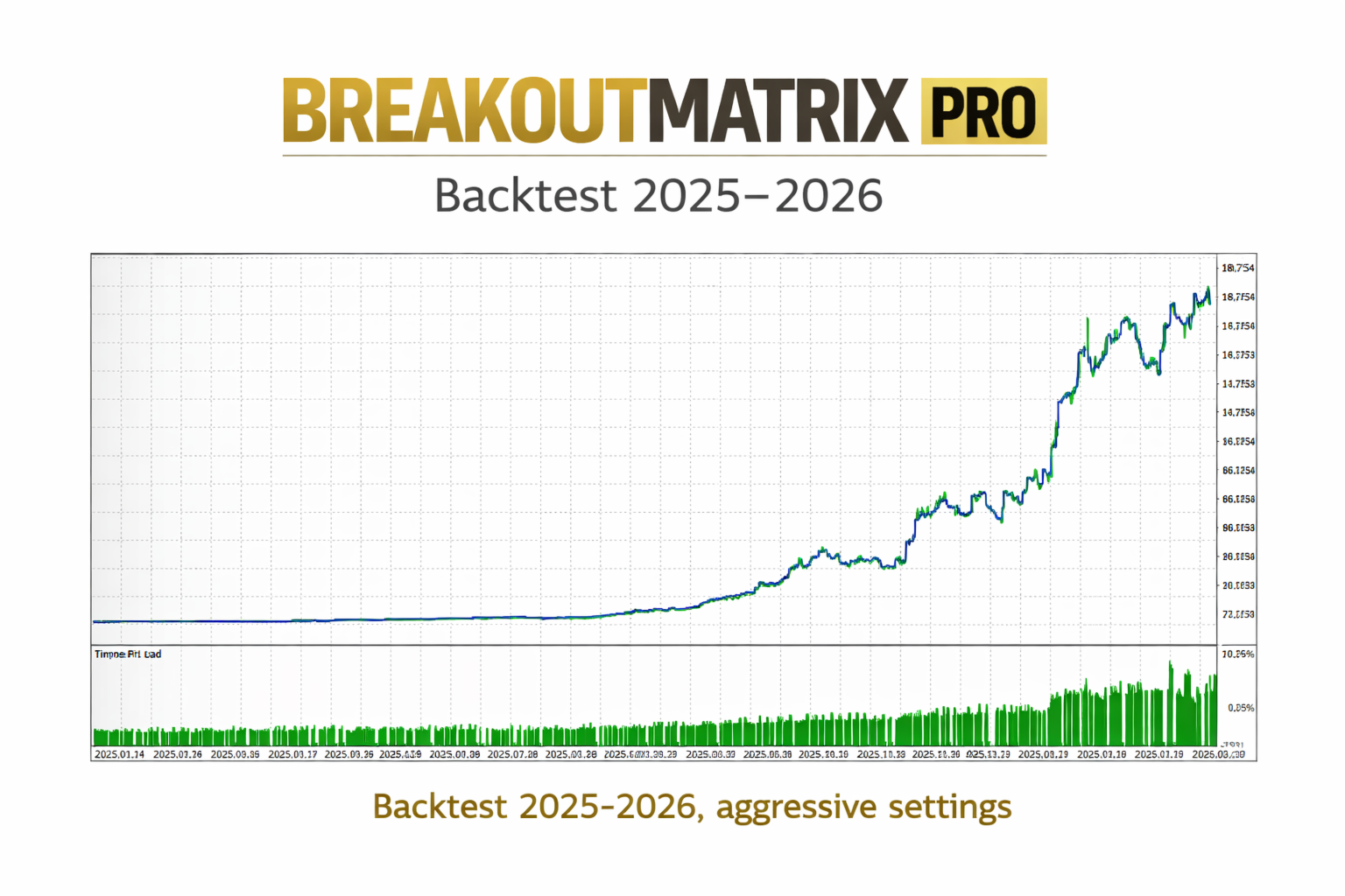 BreakoutMatrix Pro è un sistema di trading automatizzato di breakout di livello istituzionale progettato per capitalizzare il momentum del mercato. Sebbene sia altamente ottimizzato come macchina da trading per l'Oro (XAU/USD), la sua architettura universale gli consente di adattarsi a qualsiasi simbolo principale.