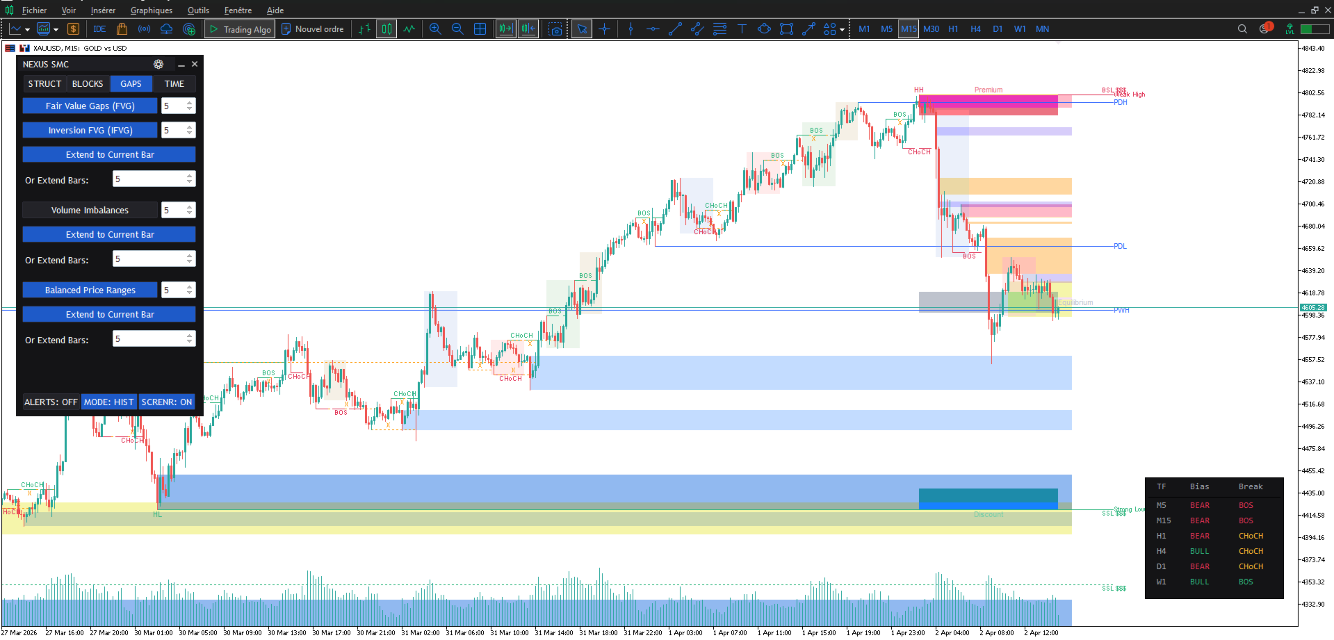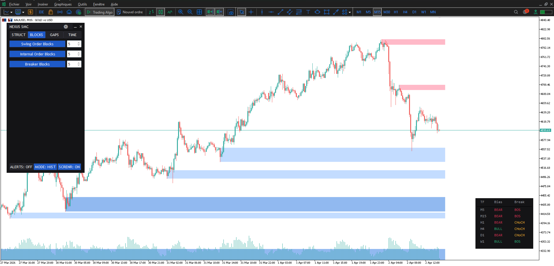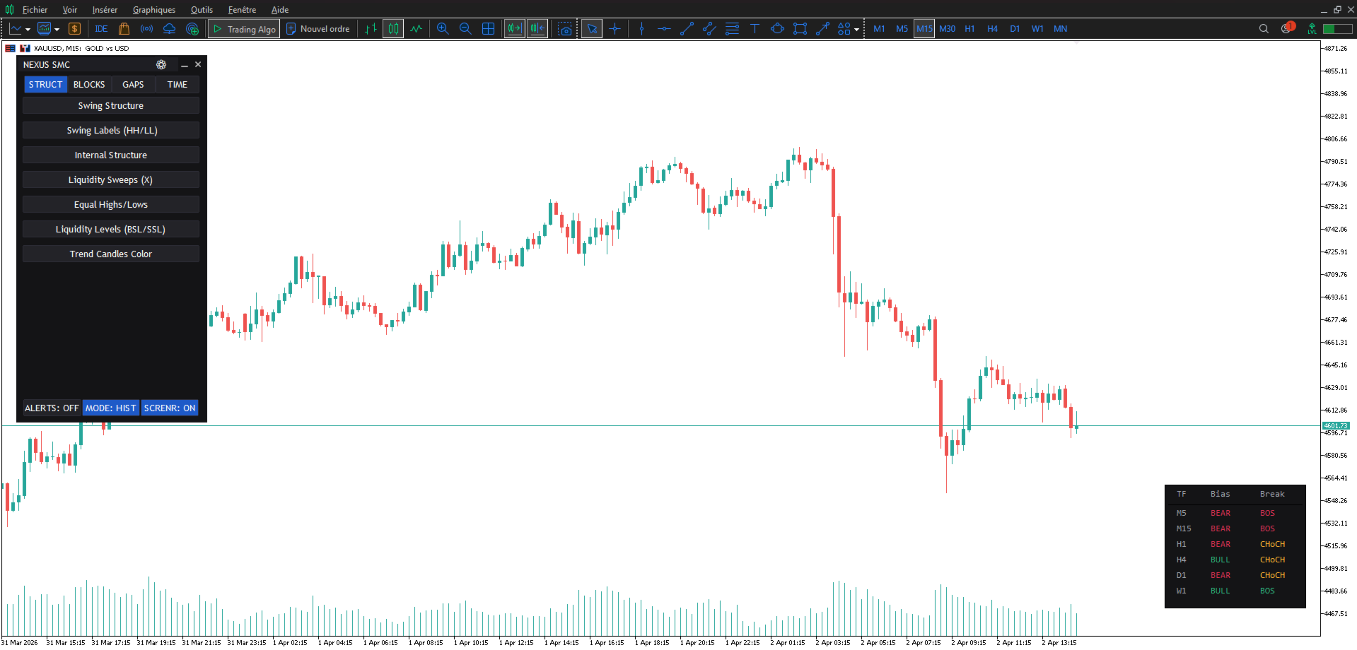 NEXUS SMC is a Premium and Comprehensive Smart Money Concepts indicator featuring an interactive Draggable Panel with Dark/Light themes and a Multi-timeframe Dashboard.