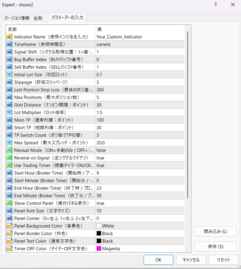 - The EA also includes settings such as earlier profit-taking when multiple averaging positions are added, as well as an operating time timer.