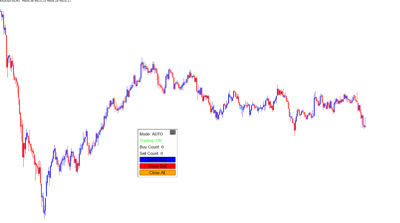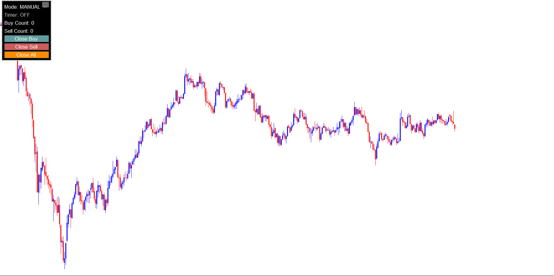 By switching to Manual Mode, entries are placed manually while exits are managed by the EA.