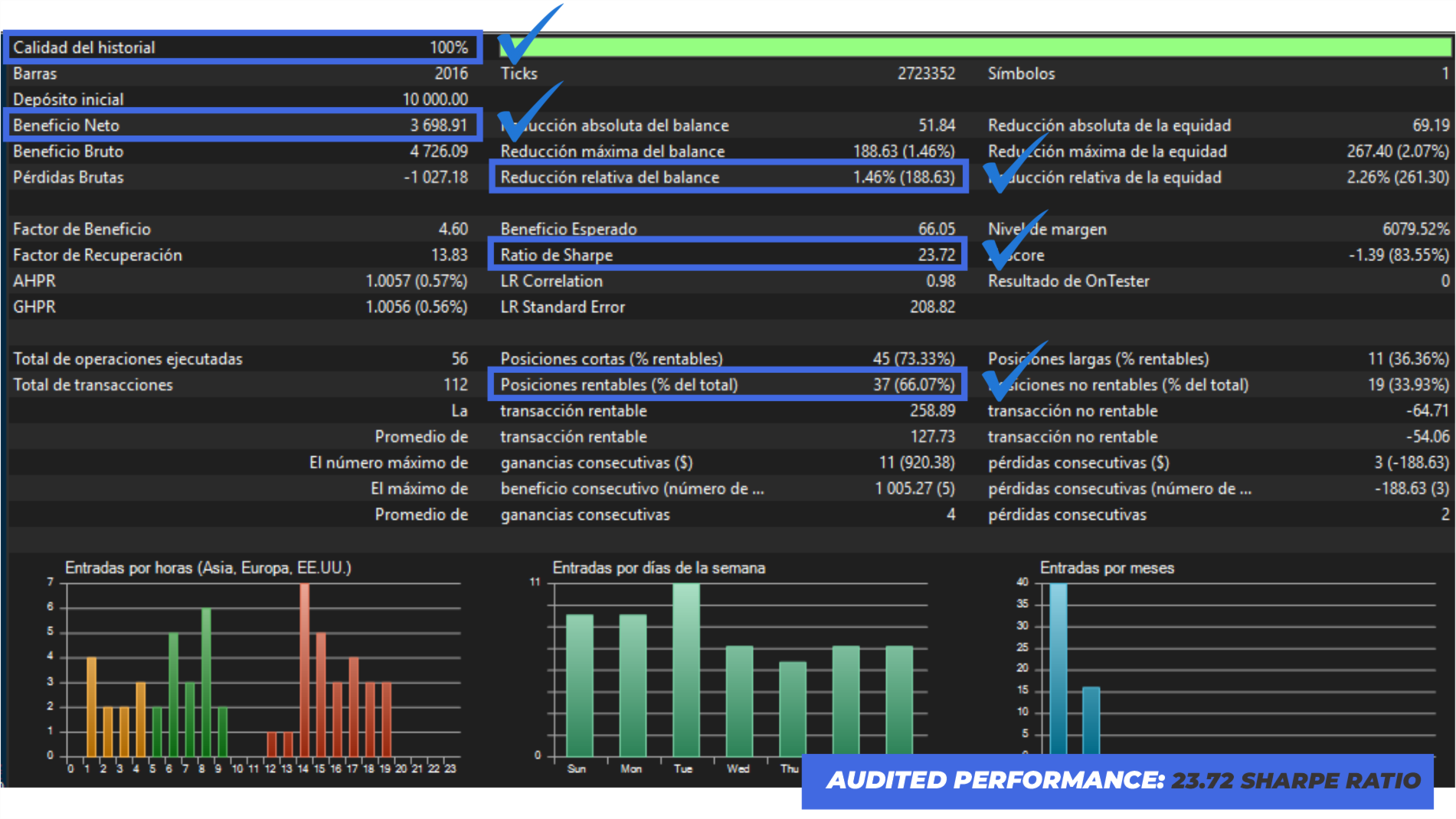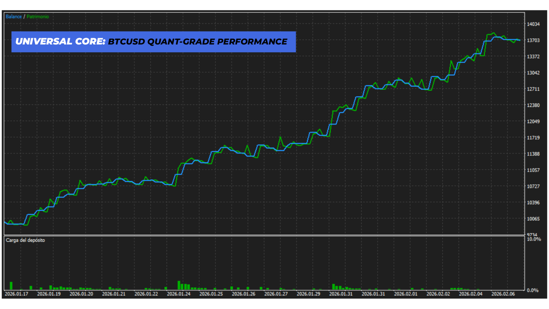 ATR-Adaptive Logic: L'algoritmo regola dinamicamente la dimensione dei lotti e i livelli di Stop Loss in base alla volatilità attuale dell'asset (XAUUSD, BTCUSD, US100).