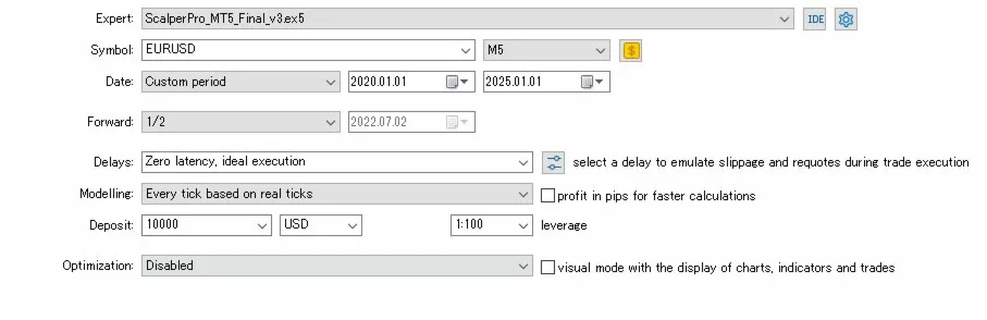 - Tested with "Every Tick Based on Real Ticks" — the most realistic mode in MT5, including variable spreads
