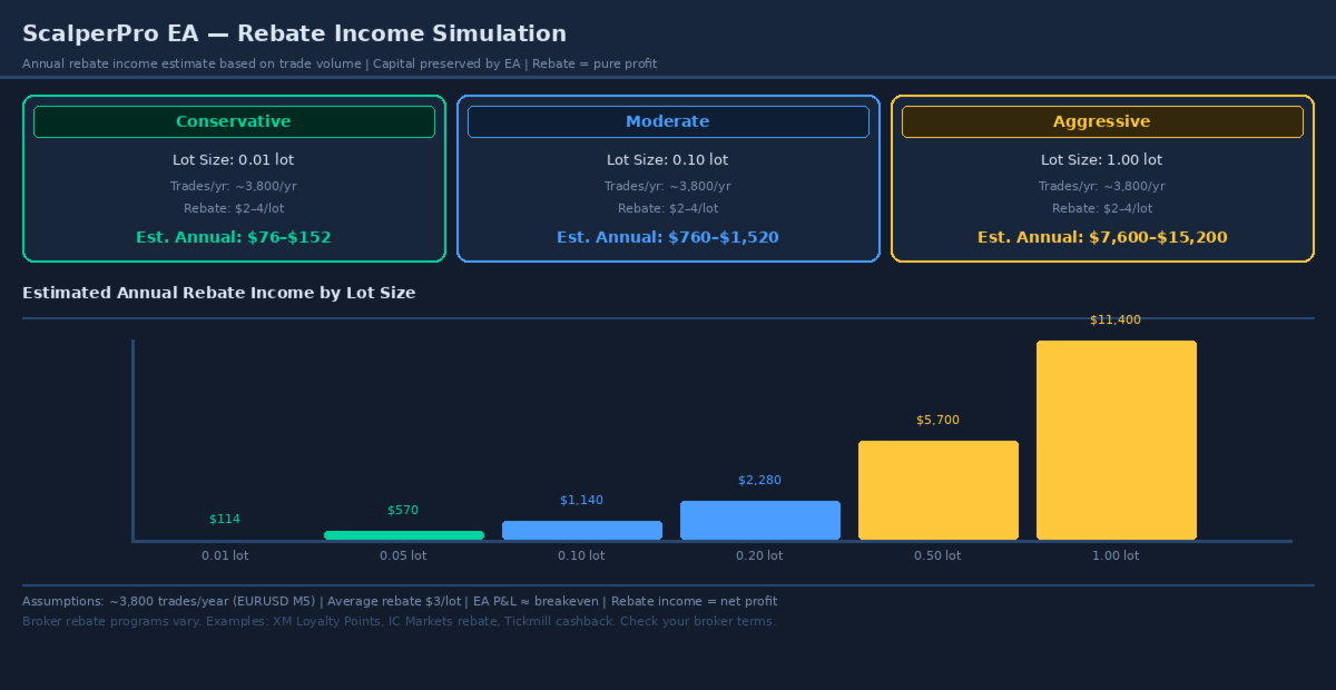 - Typical broker rebate: $2–$7 per lot
