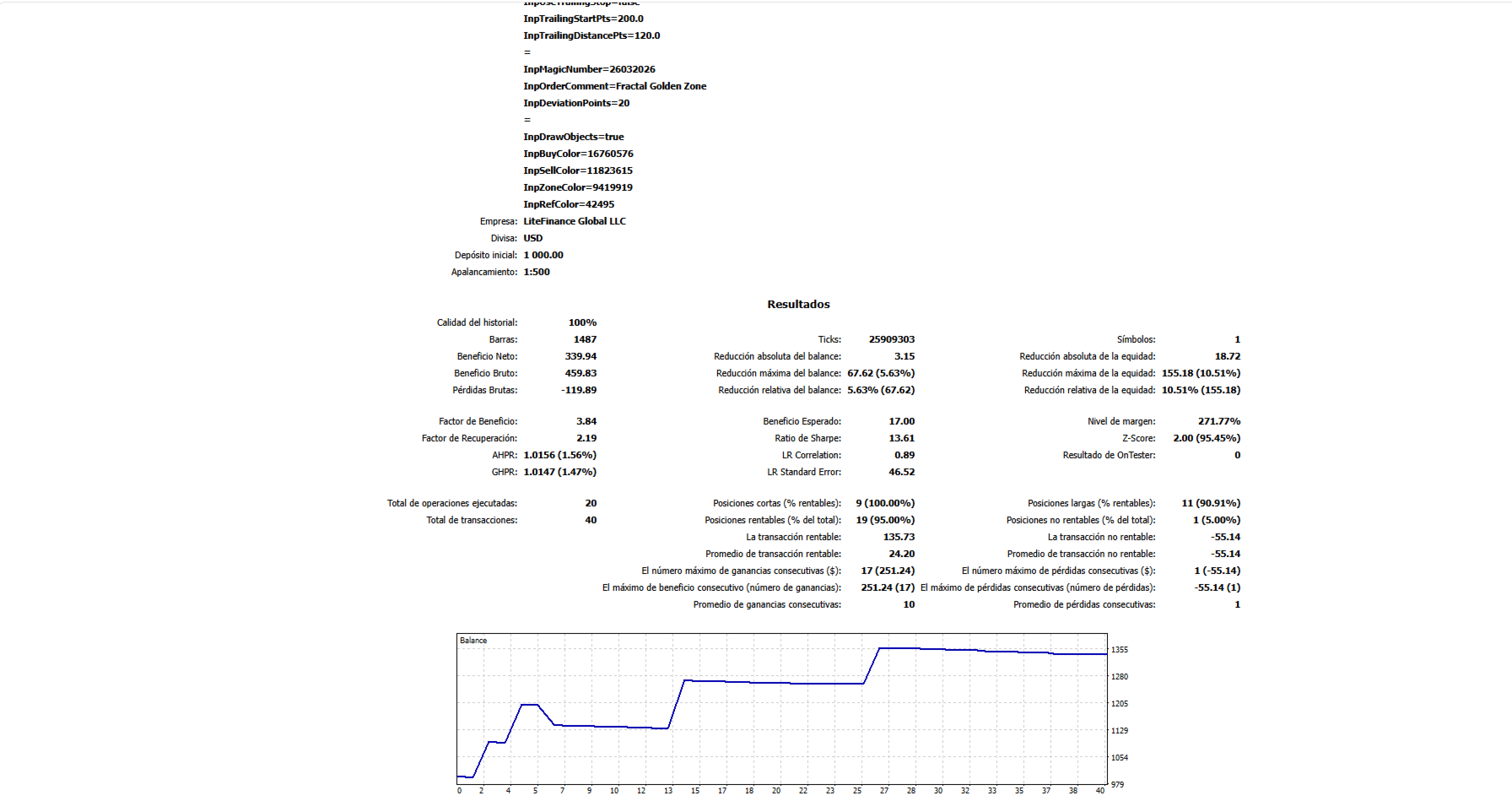 Jf Trader Multi Asset è un Expert Advisor progettato per automatizzare il trading su Nasdaq, Forex, Cripto e Oro, con una strategia focalizzata su precisione, struttura di mercato e gestione del rischio.