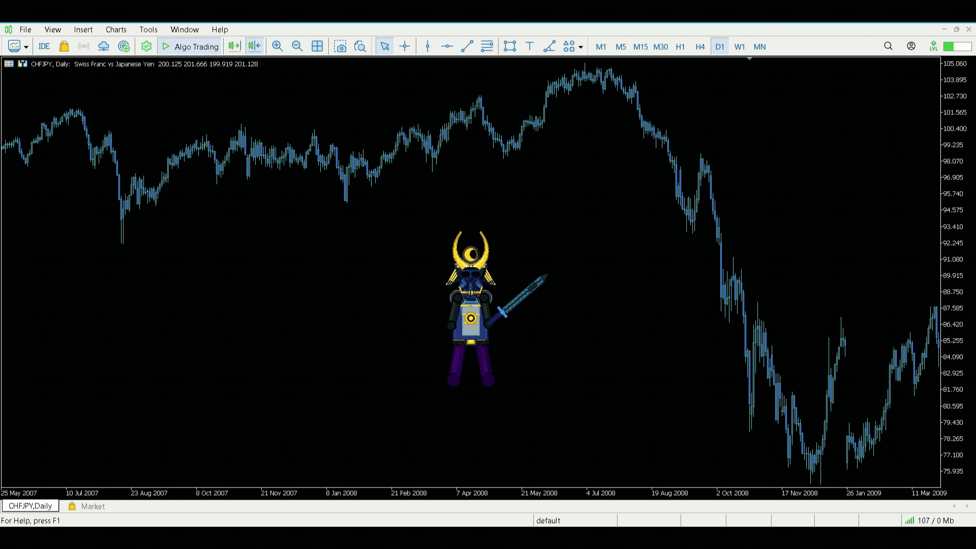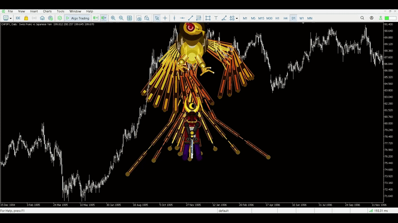 Attach the indicator to any chart and any timeframe. The samurai character will appear on the chart window. Adjust the theme and sword settings from the input parameters to match your preferred visual style. The indicator runs alongside other indicators and does not interfere with chart calculations.