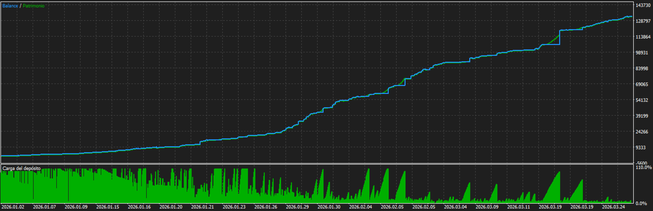 The EA includes a dynamic lot manager that, when the fixed lot size is disabled, automatically calculates the position size based on the risk percentage relative to the balance and the tick value, always respecting the broker's minimum and maximum limits and volume steps.