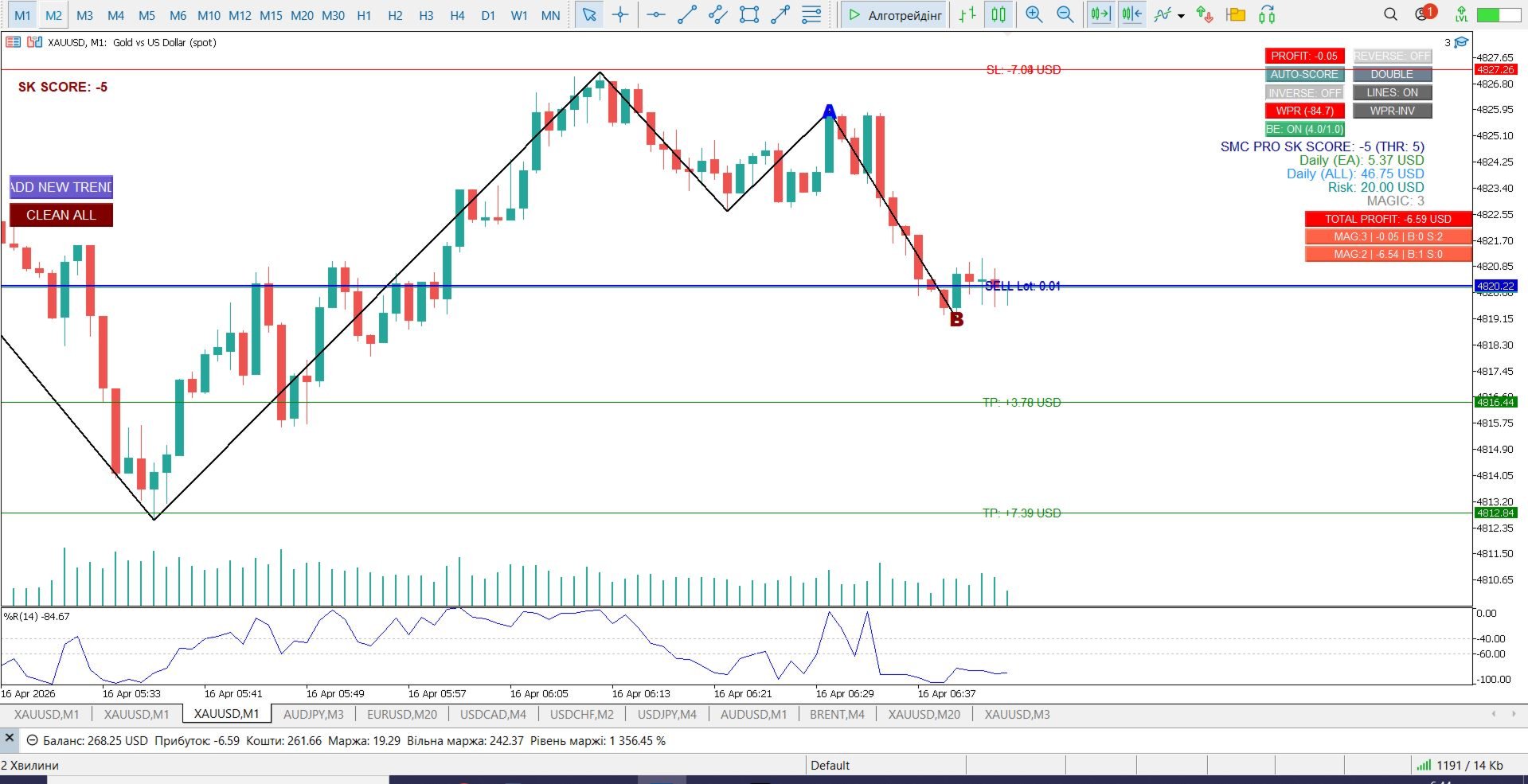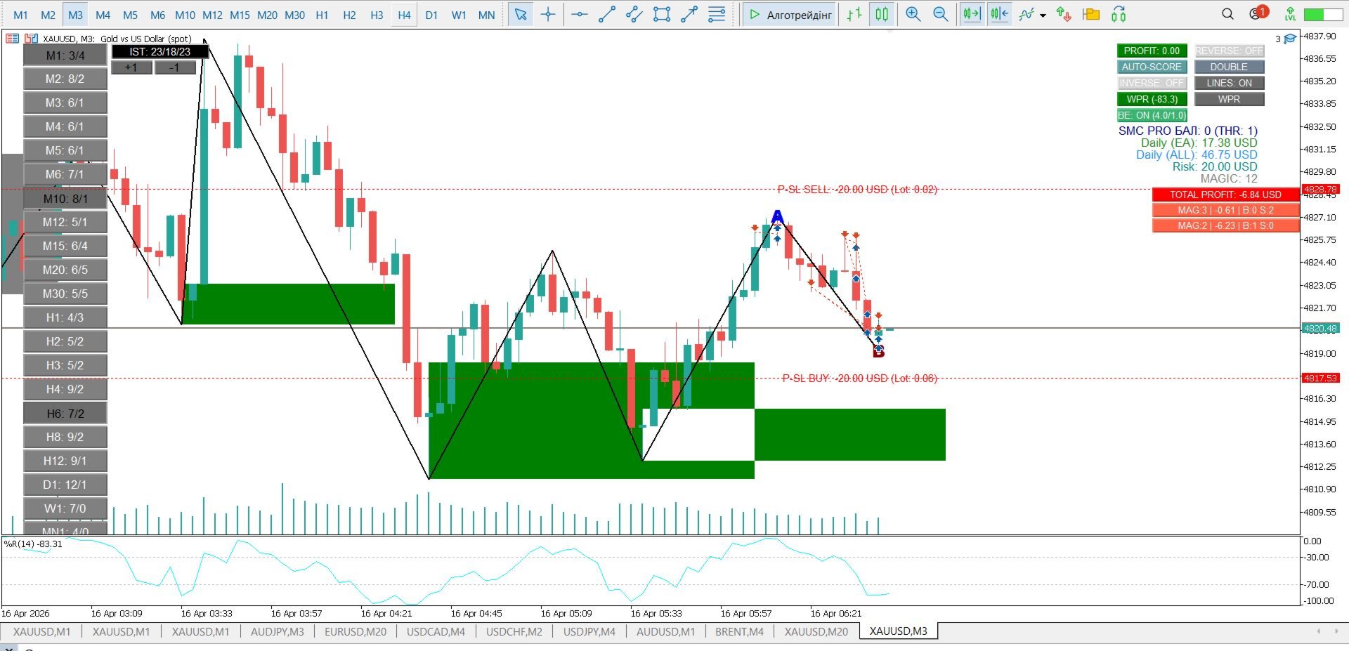 InpWPRBuyLevel / InpWPRSellLevel: Пороги, що дозволяють або забороняють вхід.