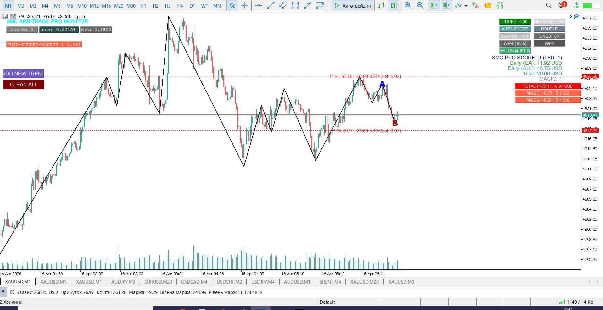 ПРОФІТ [Значення]: Плаваючий прибуток цього бота. Натискання закриває всі його позиції.